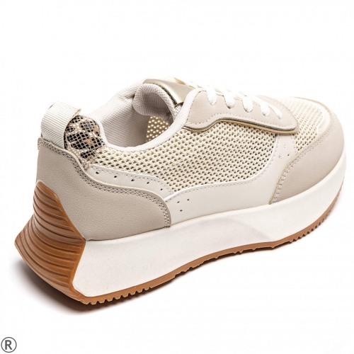 Дамски маратонки на удобна платформа от естествена кожа- Amanda Beige