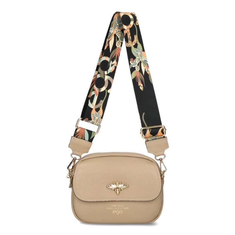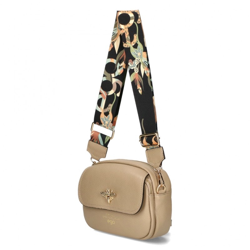 Бежова чанта от естествена кожа през рамо - EGO Beige 8810