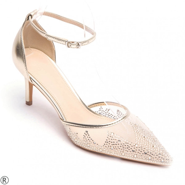 Елегантни обувки на ток с камъни в златист цвят - Stella Gold 10288