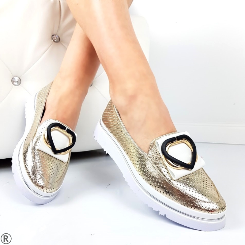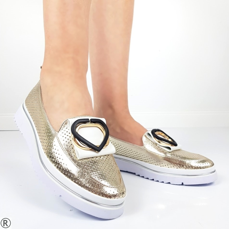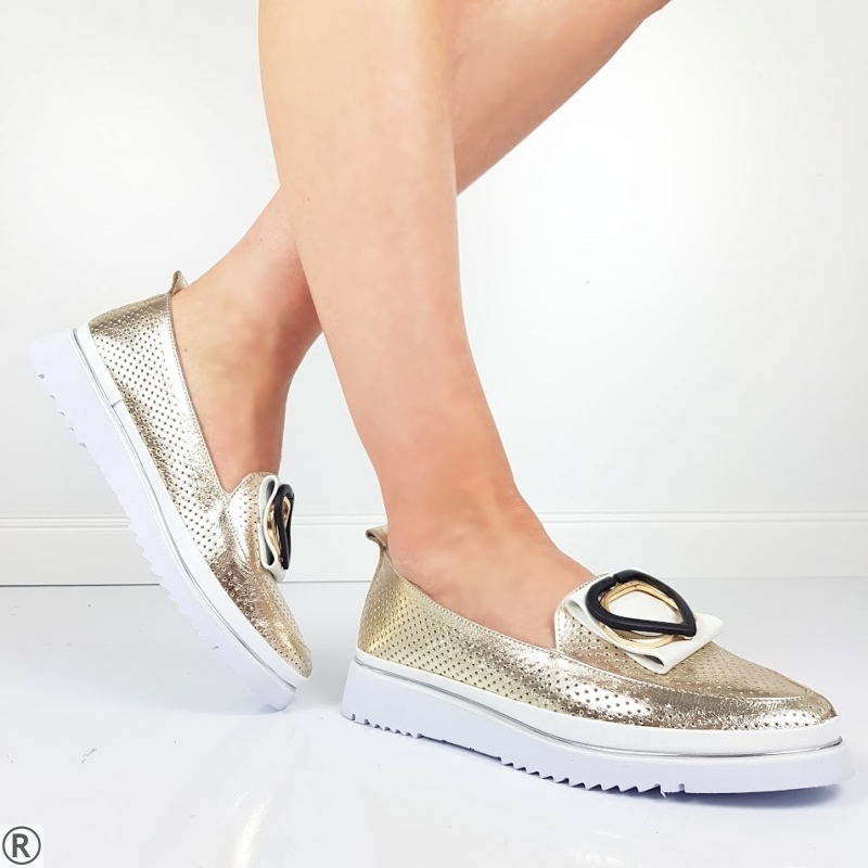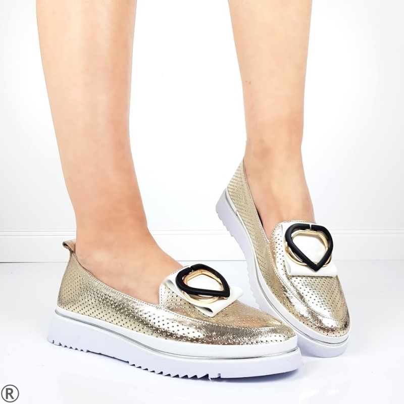 Обувки от естествена кожа в златист цвят- Amanda Gold 10385