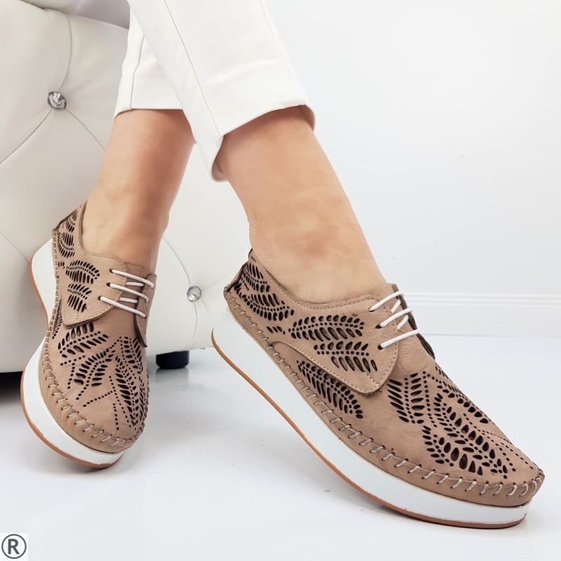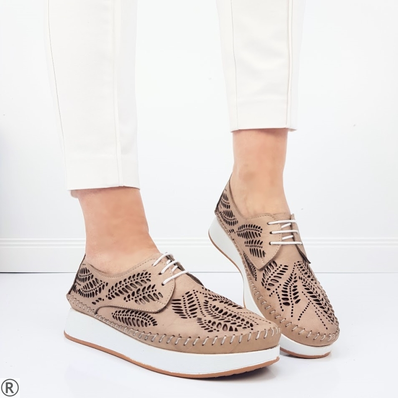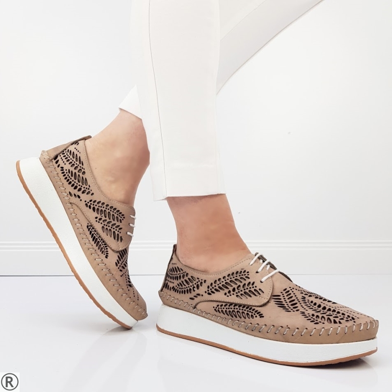 100% естествена кожа в бежов цвят с анатомична стелка.