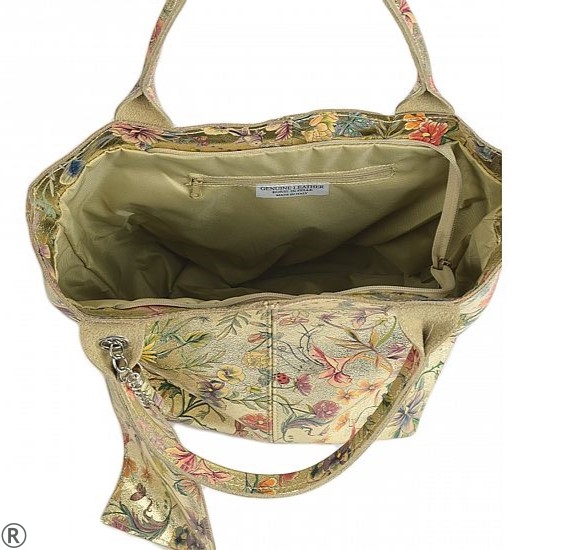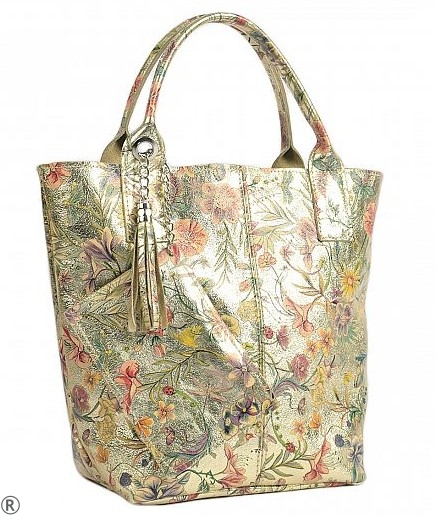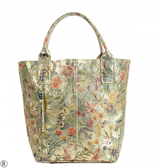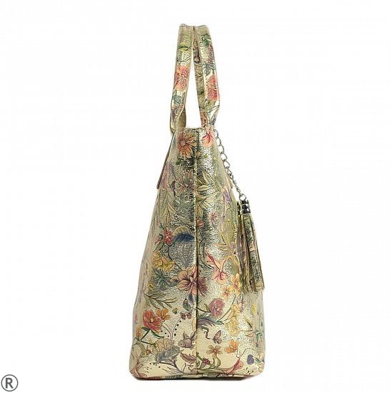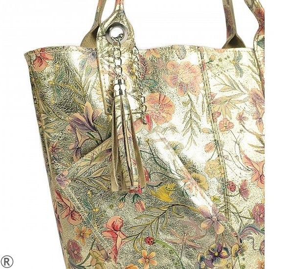 Златиста дамска чанта от естествена кожа- Vera Gold 10610