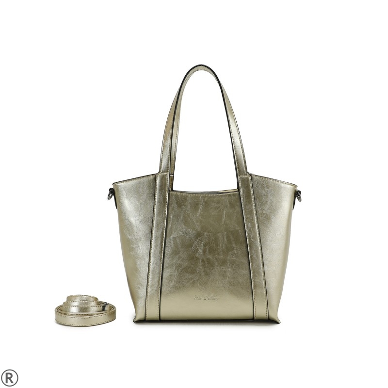 Златиста дамска чанта с дълги дръжки- INES DELAURE Gold 10620