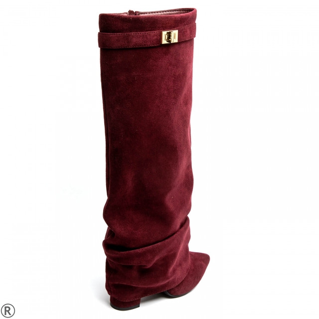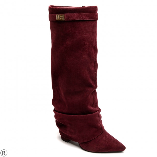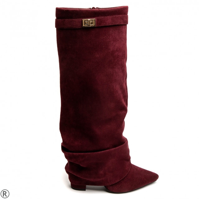 Стилни ботуши на ток в цвят бордо- Irina Burgundy 10681