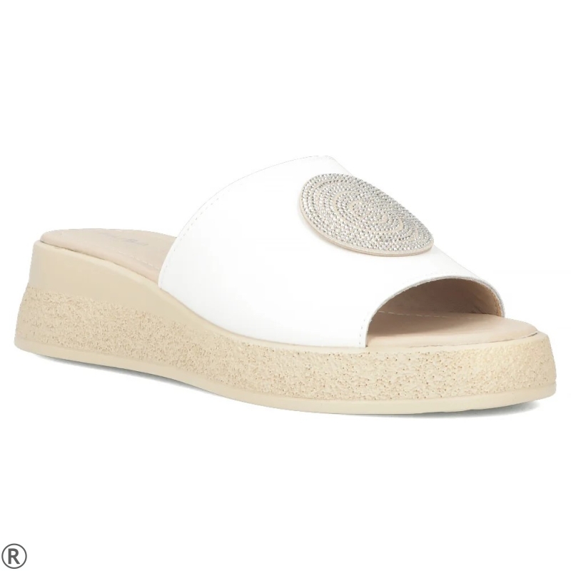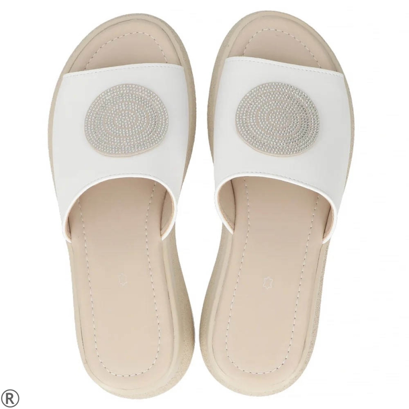 Бели чехли на платформа естествена кожа - Elena White 11008