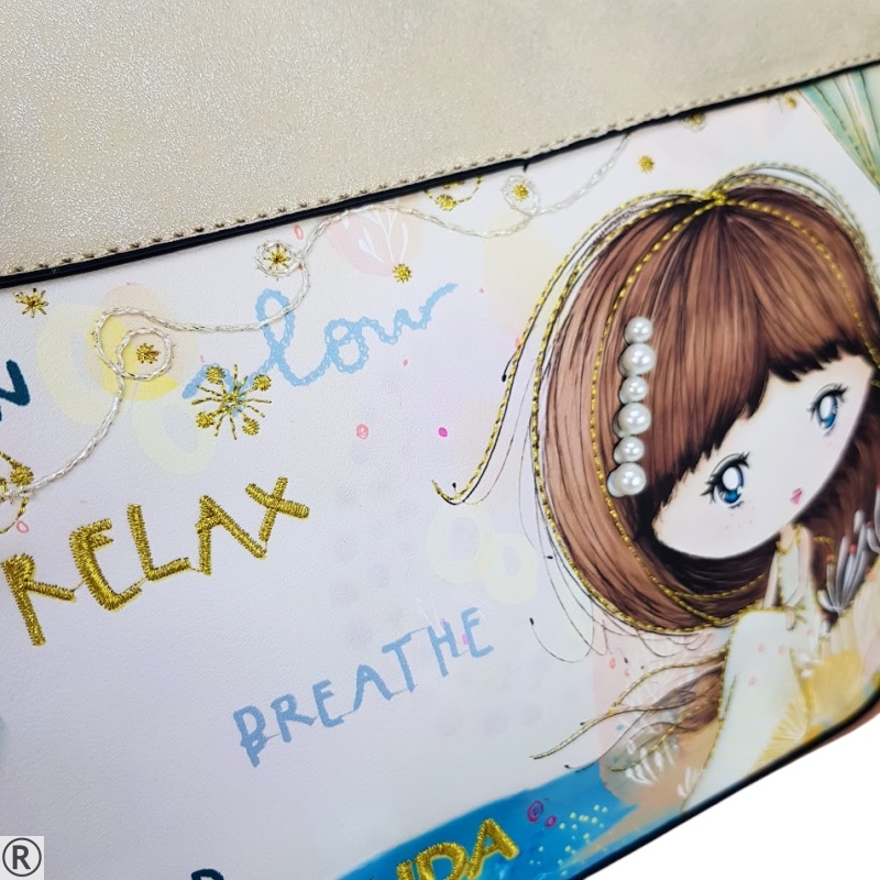 Цветна чанта с дълга дръжка- Sindi Beige 11040