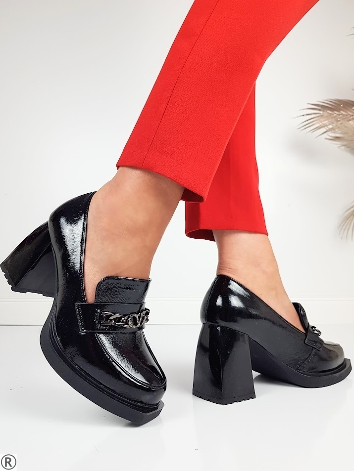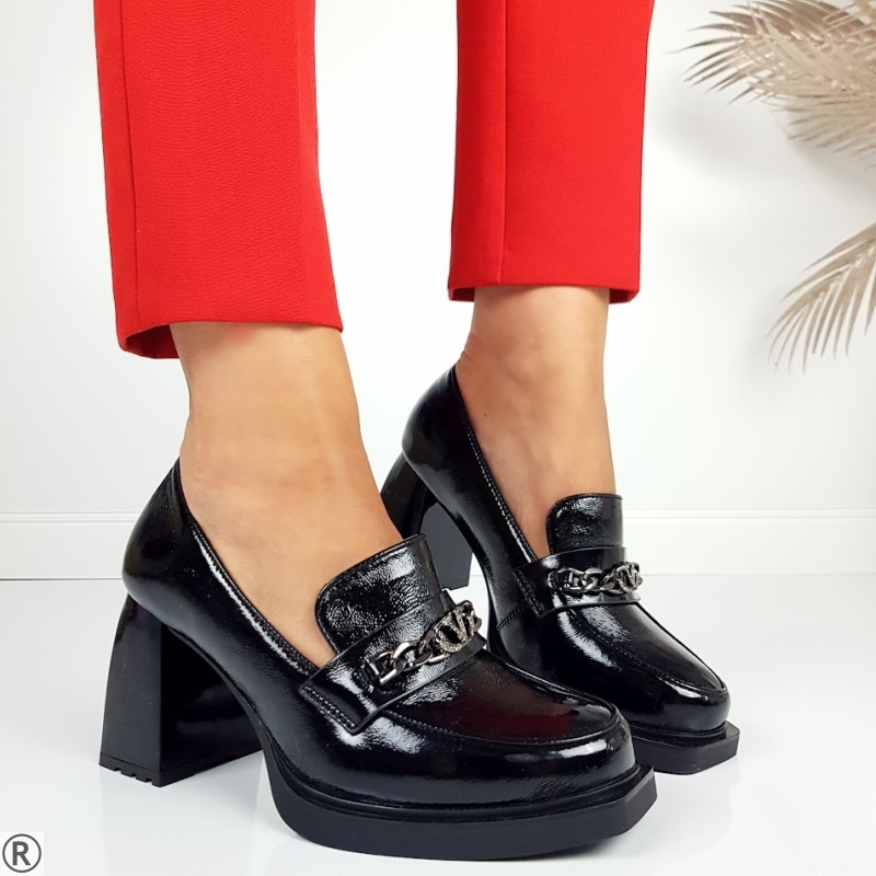 Елегантни черни обувки на ток и платформа- Elza Black 11088