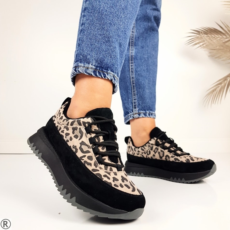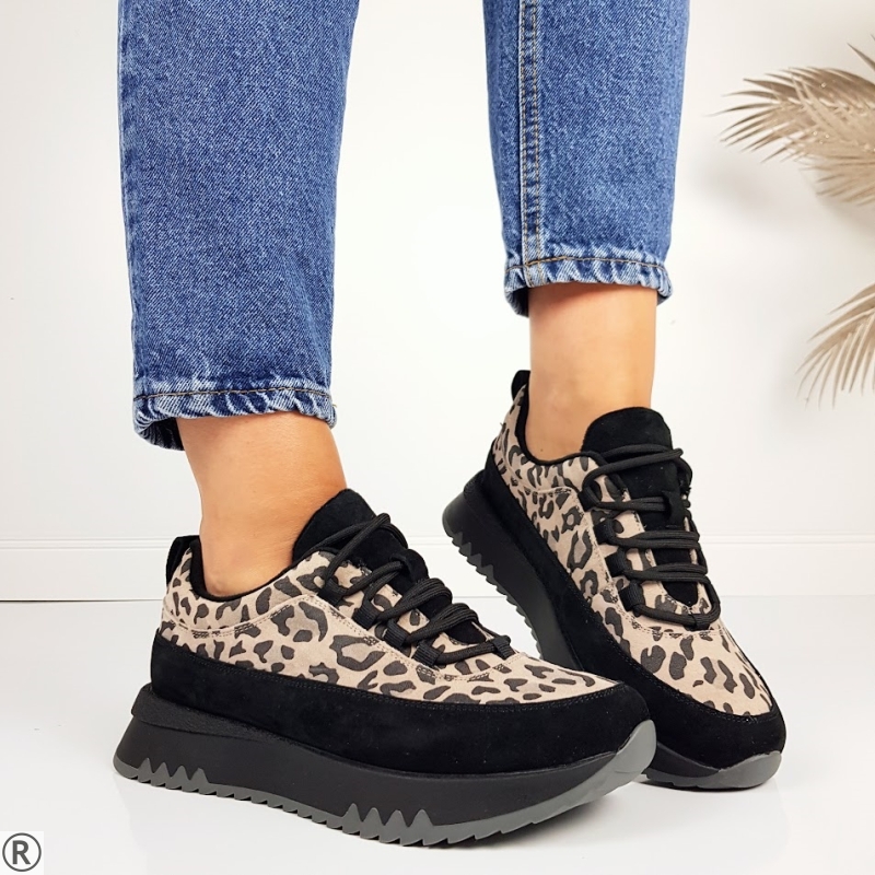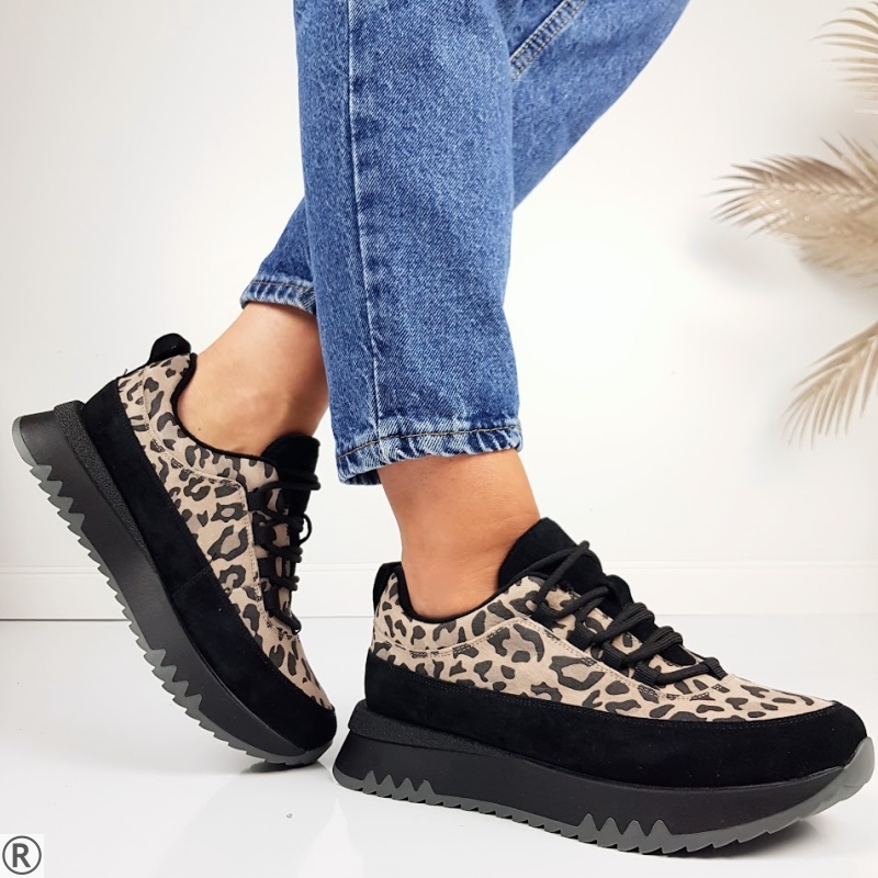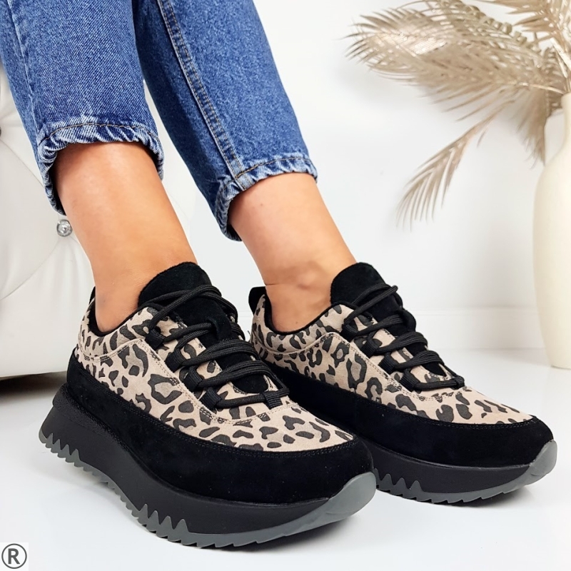Начало НОВА КОЛЕКЦИЯ КЕЦОВЕ И СПОРТНИ ОБУВКИ Леопардови маратонки от естествен велур- Rita 11113