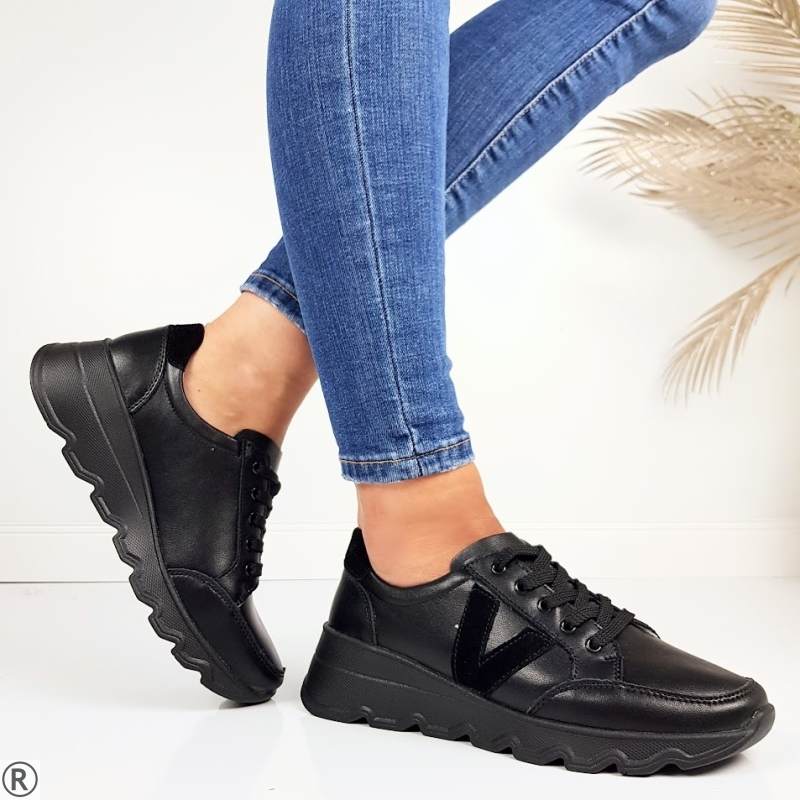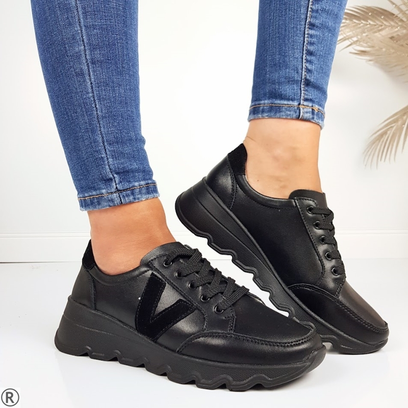 Начало НОВА КОЛЕКЦИЯ КЕЦОВЕ И СПОРТНИ ОБУВКИ Черни маратонки от естествена кожа- Mira Black 11114