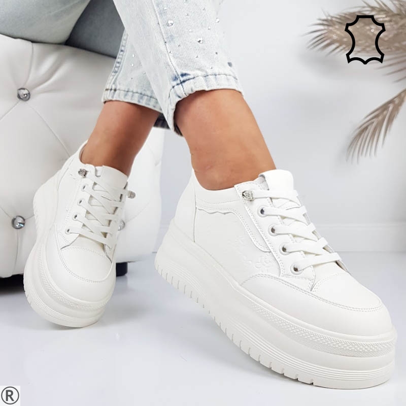 Бежови кецове от естествена кожа - Klaudia White 11197
