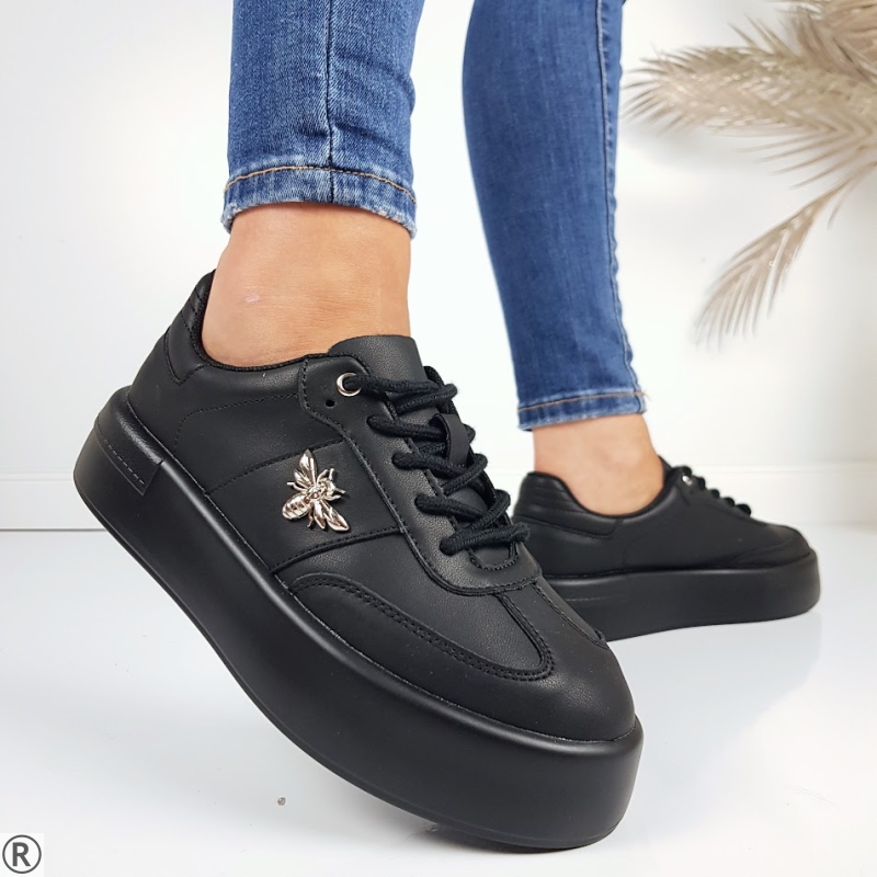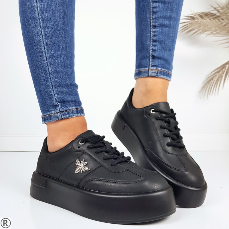 Начало НОВА КОЛЕКЦИЯ КЕЦОВЕ И СПОРТНИ ОБУВКИ Черни кецове от естествена кожа с пчела- Arais Black 11201