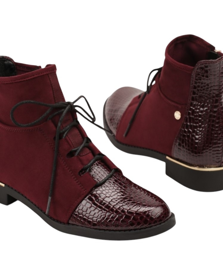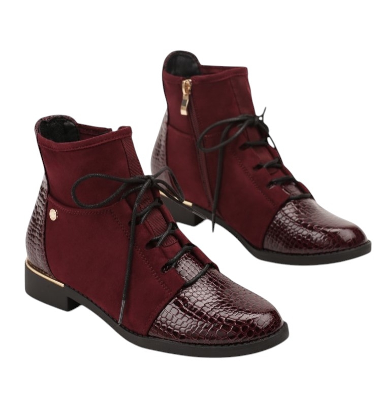 Начало НОВА КОЛЕКЦИЯ ДАМСКИ БОТИ Ежедневни боти Равни боти бордо с връзки и цип - Lura 11233