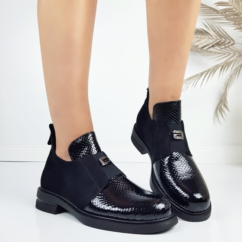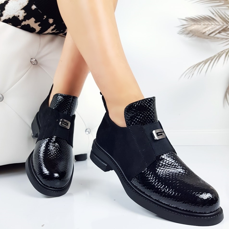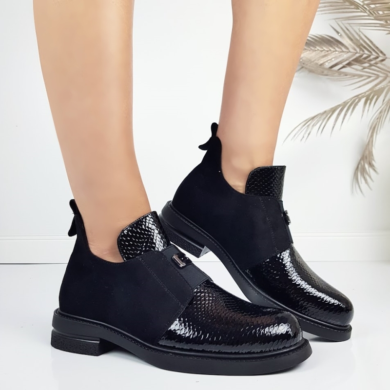 Начало НОВА КОЛЕКЦИЯ ДАМСКИ БОТИ Ежедневни боти Черни дамски боти от велур и лак- Klara Black 11244