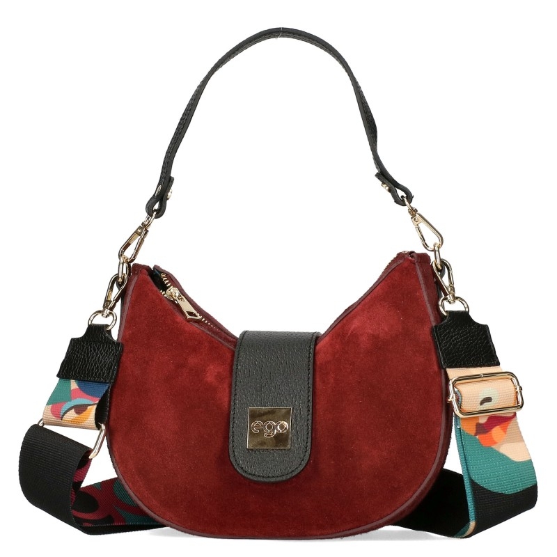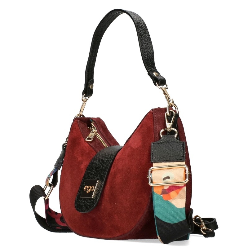 Чанта от естествен велур цвят бордо с дълга дръжка- EGO 11254