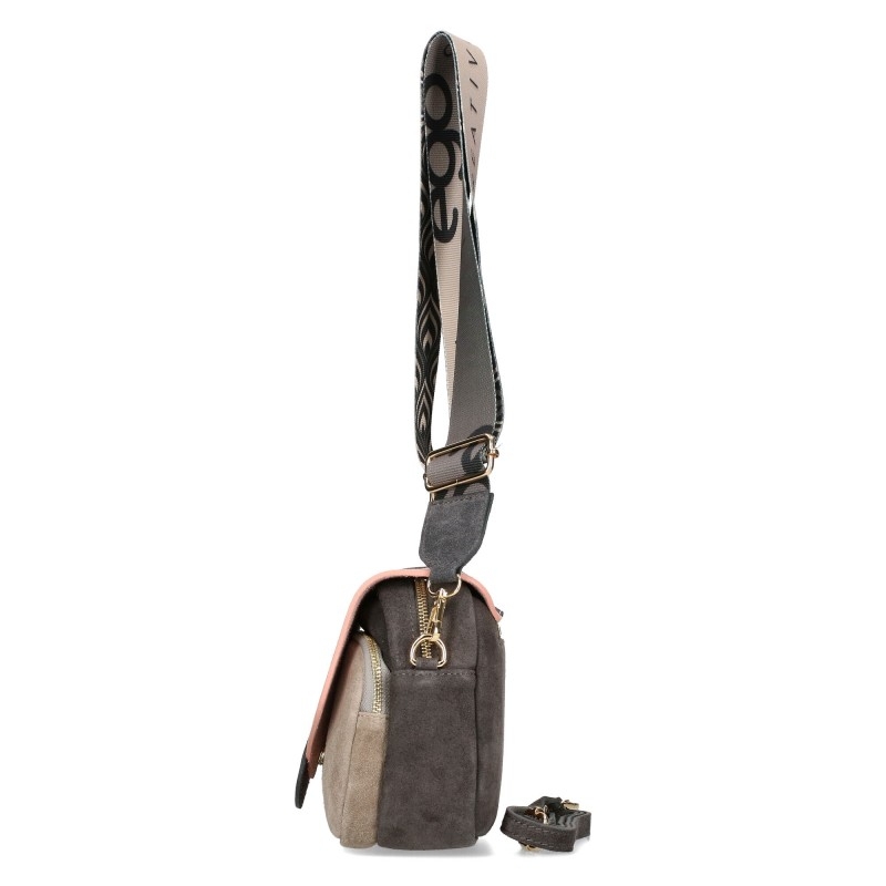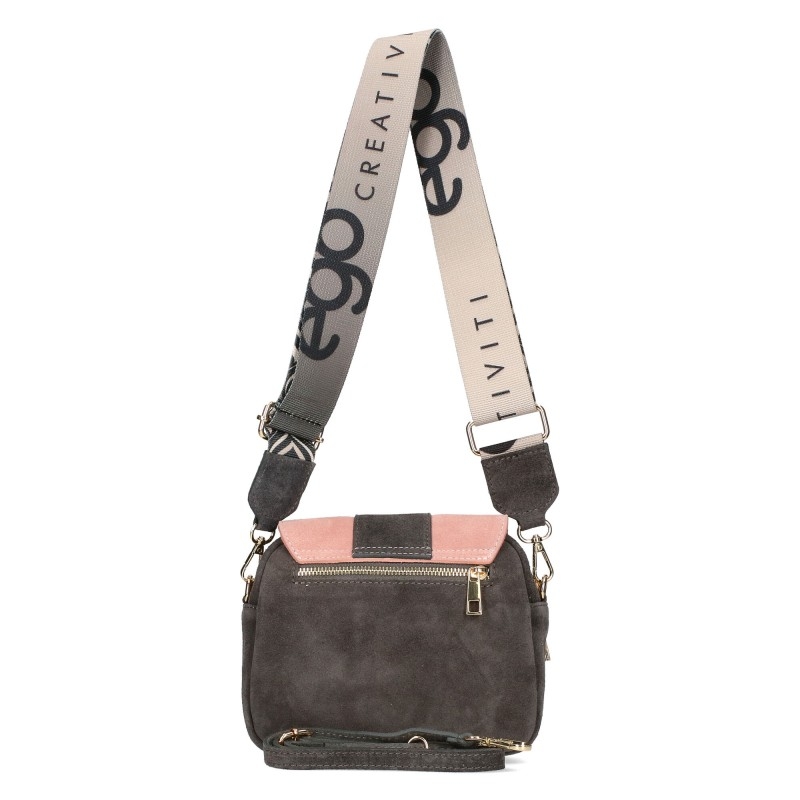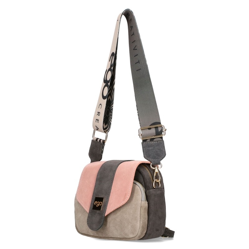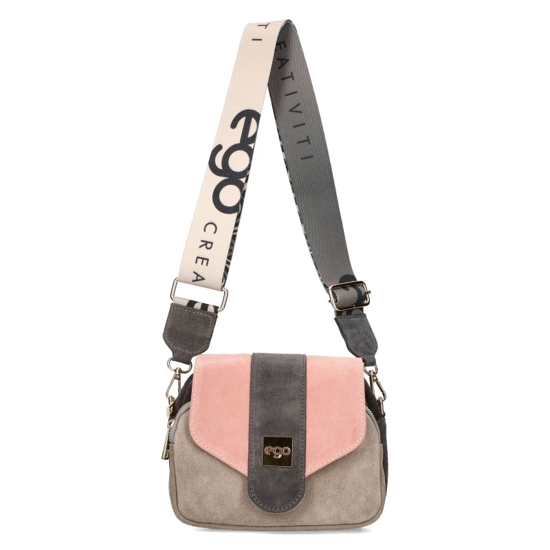 Чанта от естествен велур в сив и розов цвят- EGO 11256