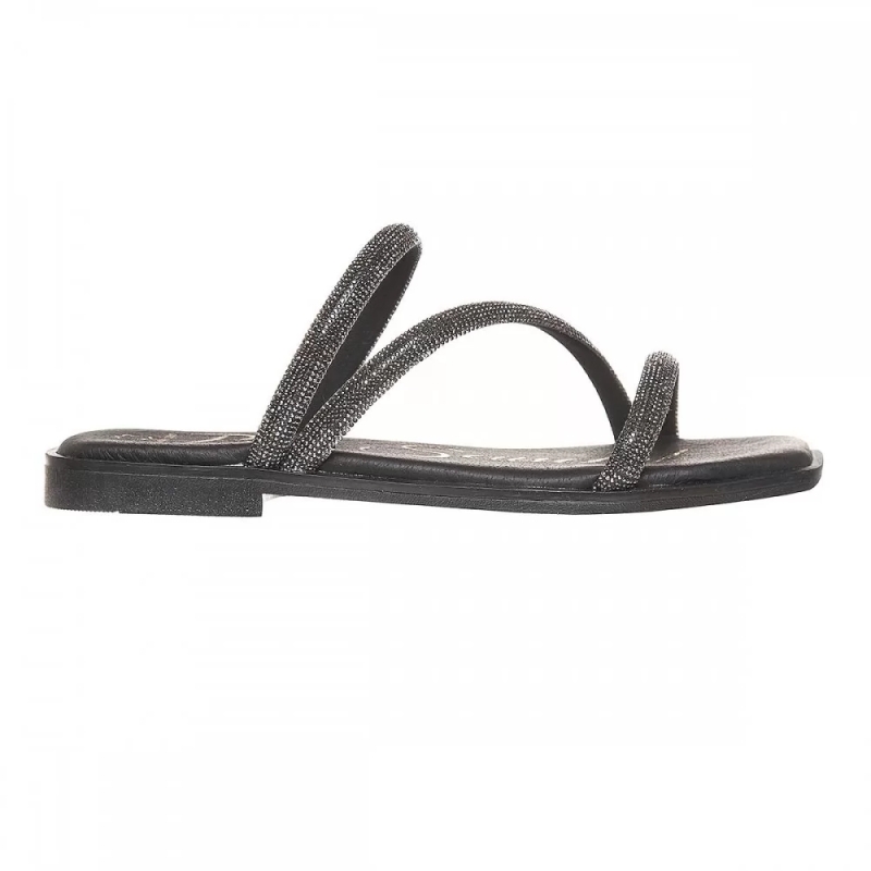 Начало ДАМСКИ ОБУВКИ ДАМСКИ САНДАЛИ И ЧЕХЛИ Чехли Равни чехли от естествена кожа с камъни- Nansi Black 11287