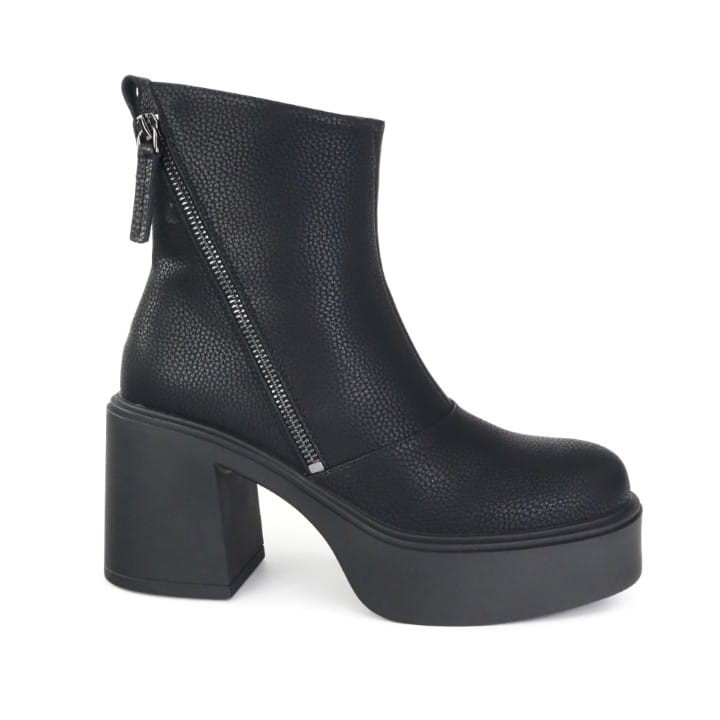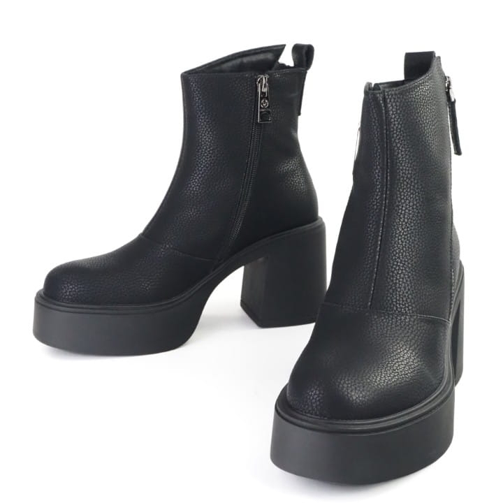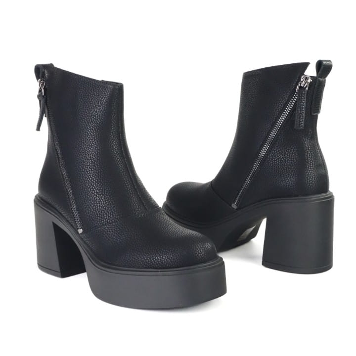 Черни боти на ток и платформа от естествена кожа- Krista Black 11294
