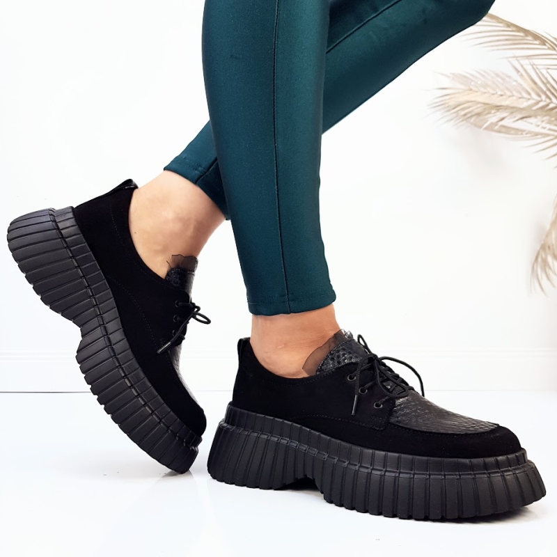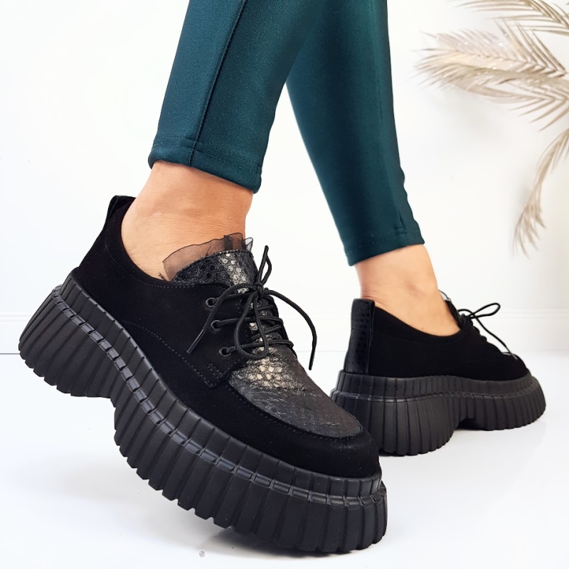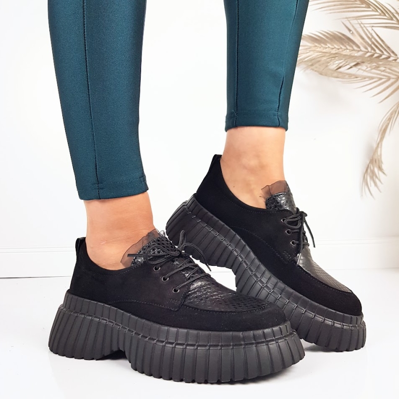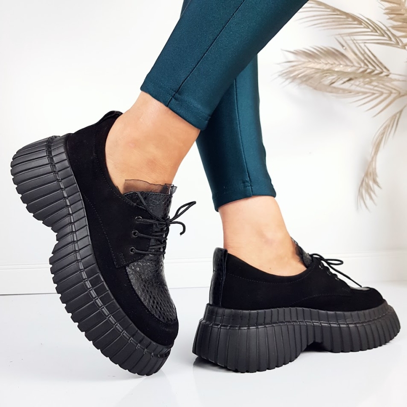 Ежедневни обувки от естествена кожа на платформа- Daris Black 11328