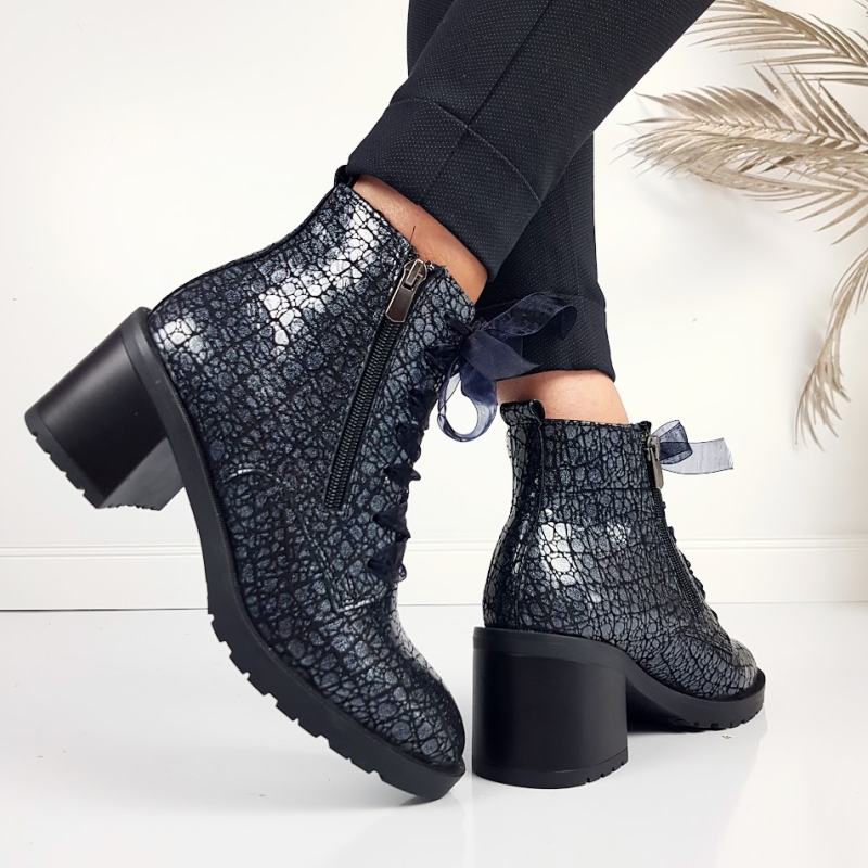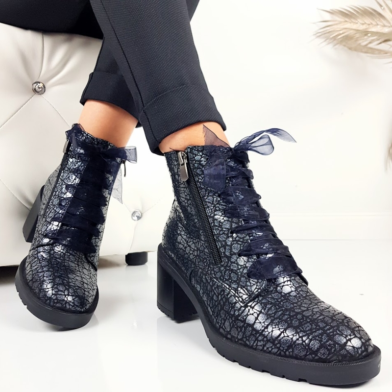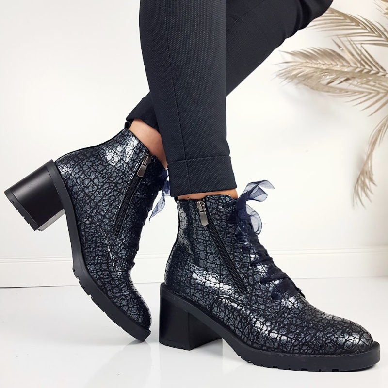 Тъмно сини боти от естествена кожа на удобен ток- Darena Blue 11331