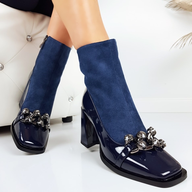 Начало НОВА КОЛЕКЦИЯ ДАМСКИ БОТИ Елегантни боти Сини боти от лак и велур с камъни- Eliza Bulgaria 11412