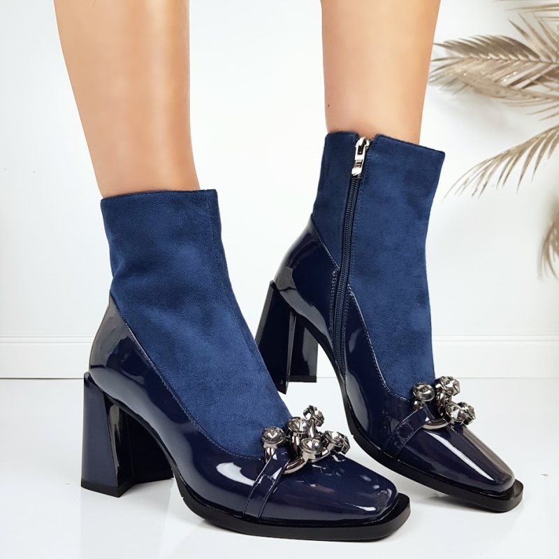 Сини боти от лак и велур с камъни- Eliza Bulgaria 11412
