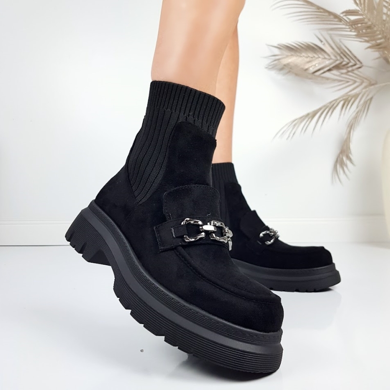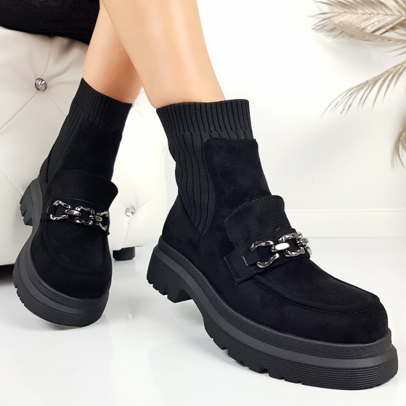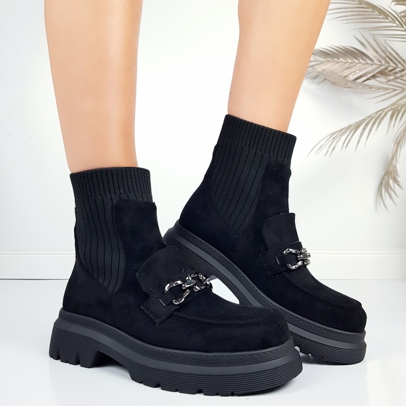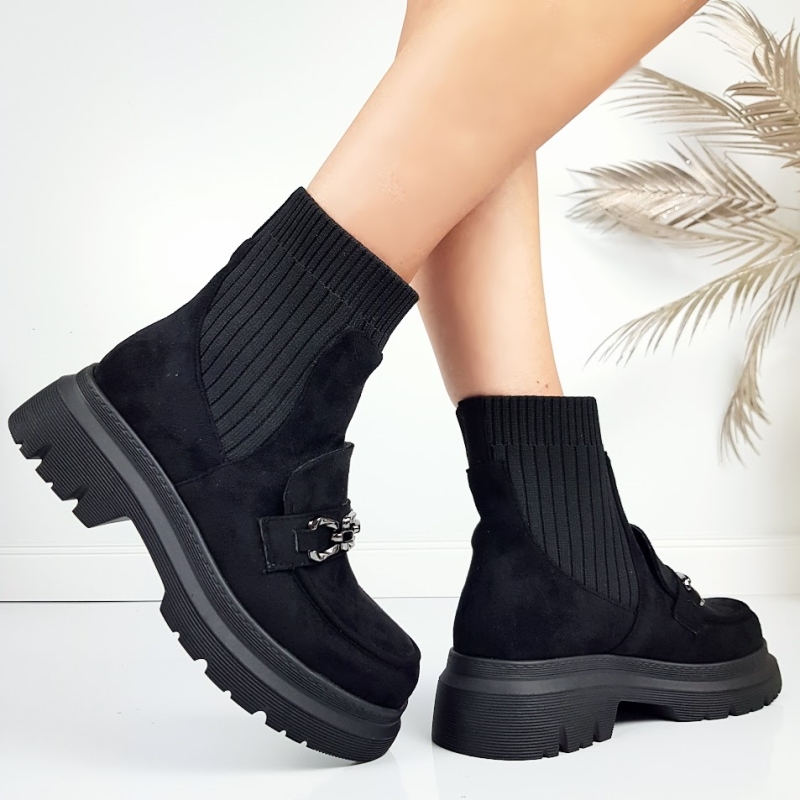 Черни равни боти от велур с плетиво- Eliza Bulgaria 11415