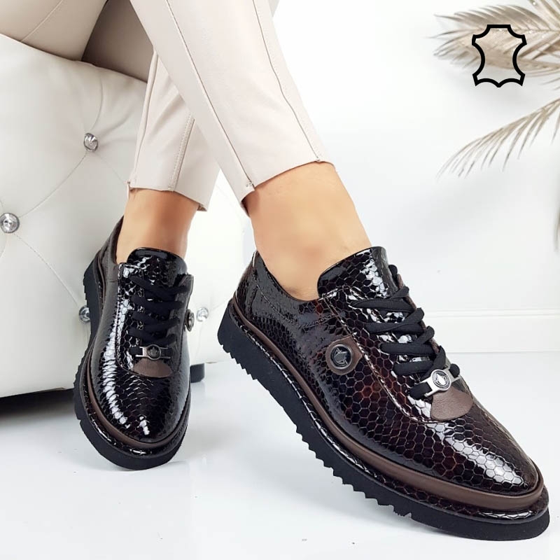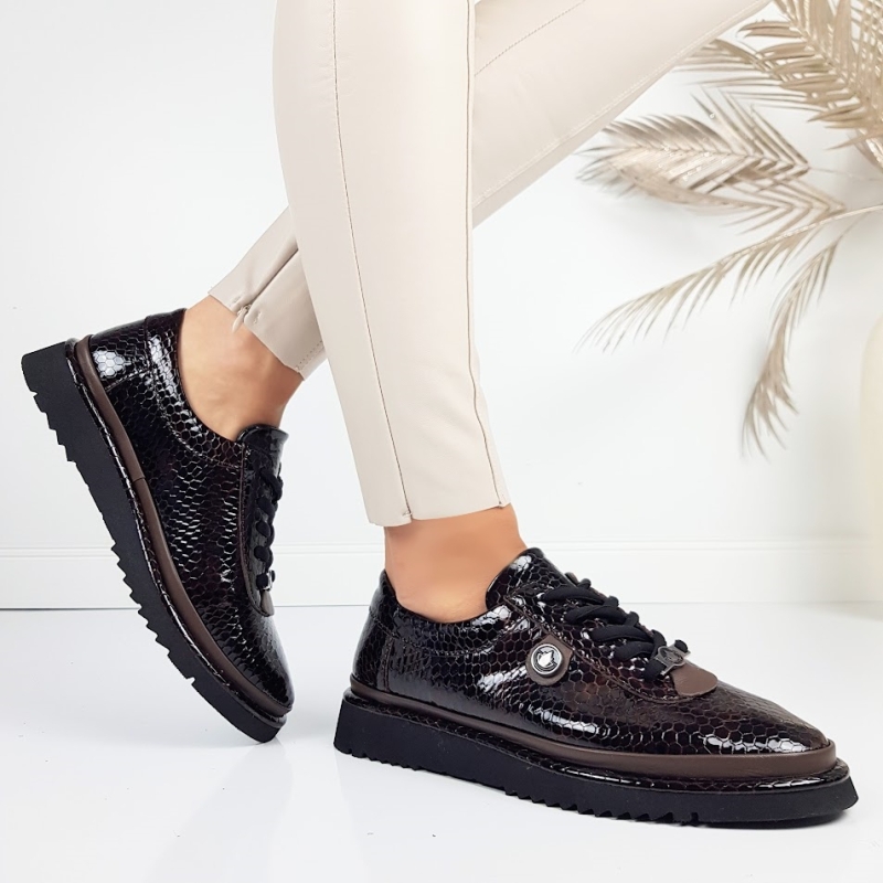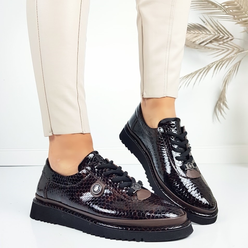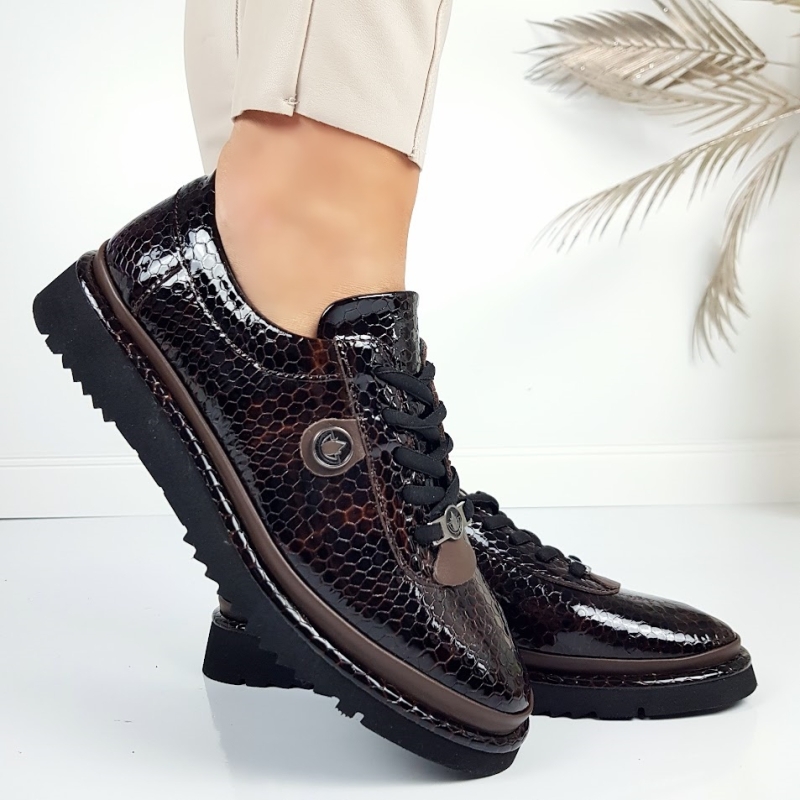 Кафяви лачени обувки със змийски принт- Hana Brown 11418