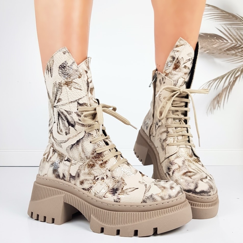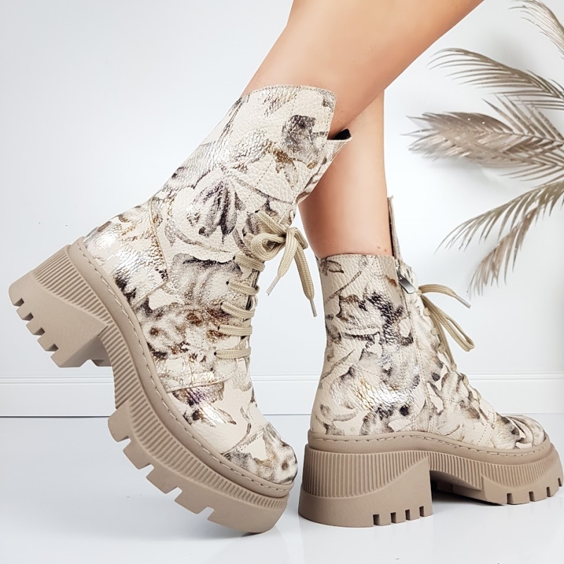 Боти от естествена кожа на платформа-Daris Beige 11442
