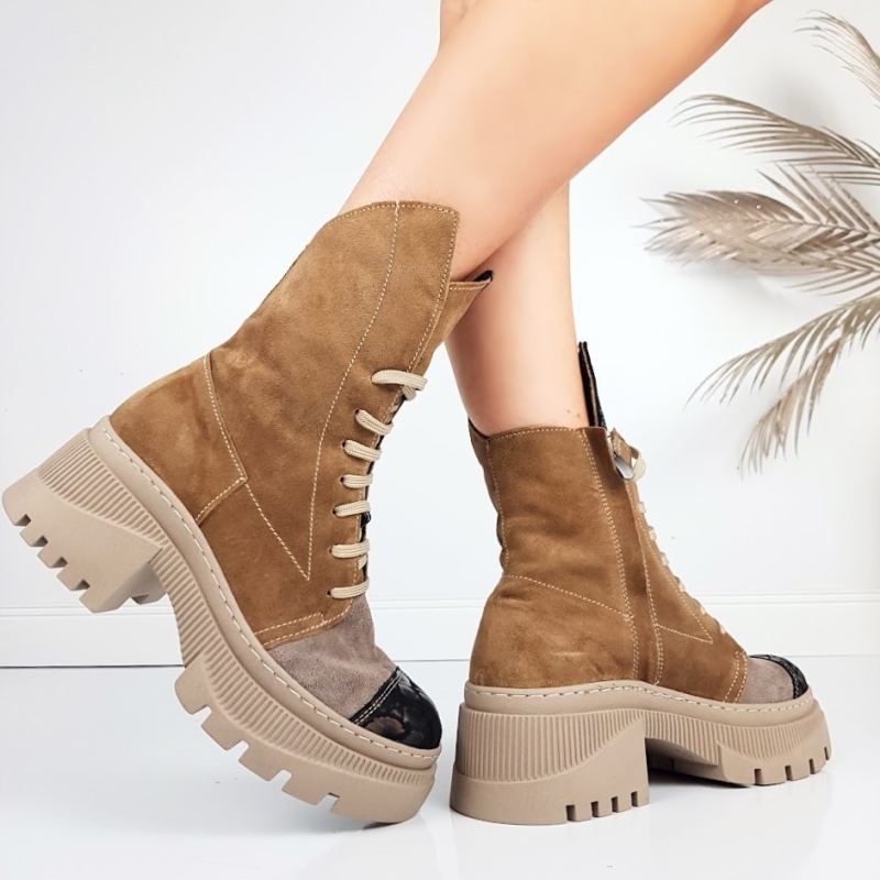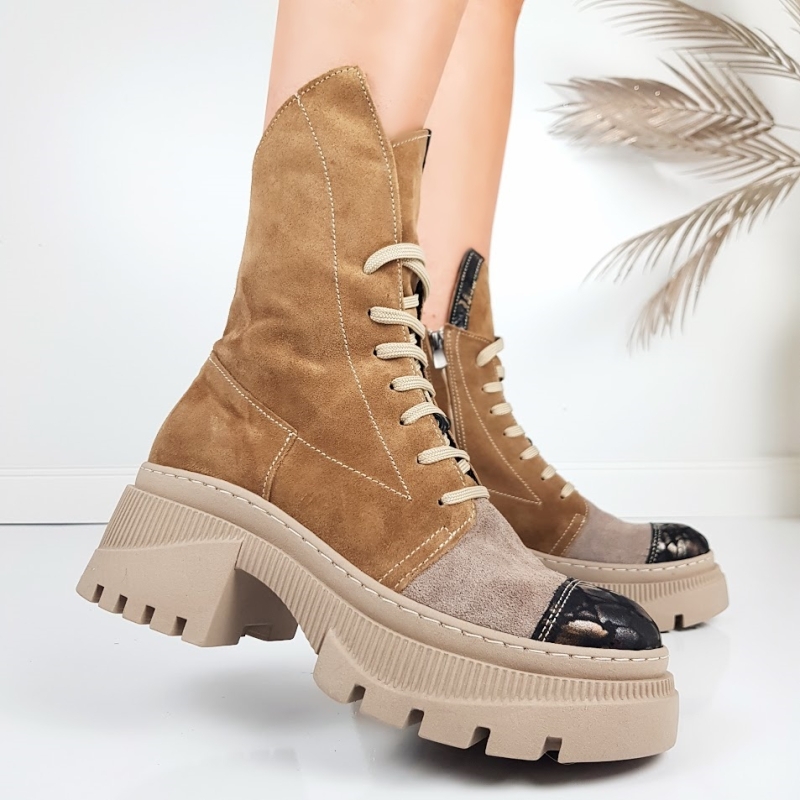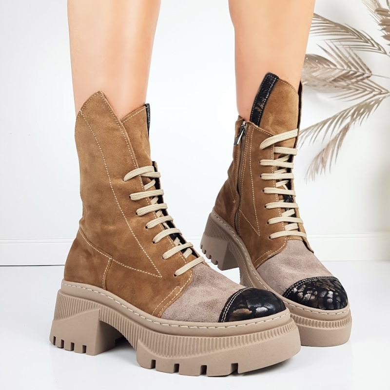 Боти от естествен велур в кафяв цвят и цвят визон- Glami 11443
