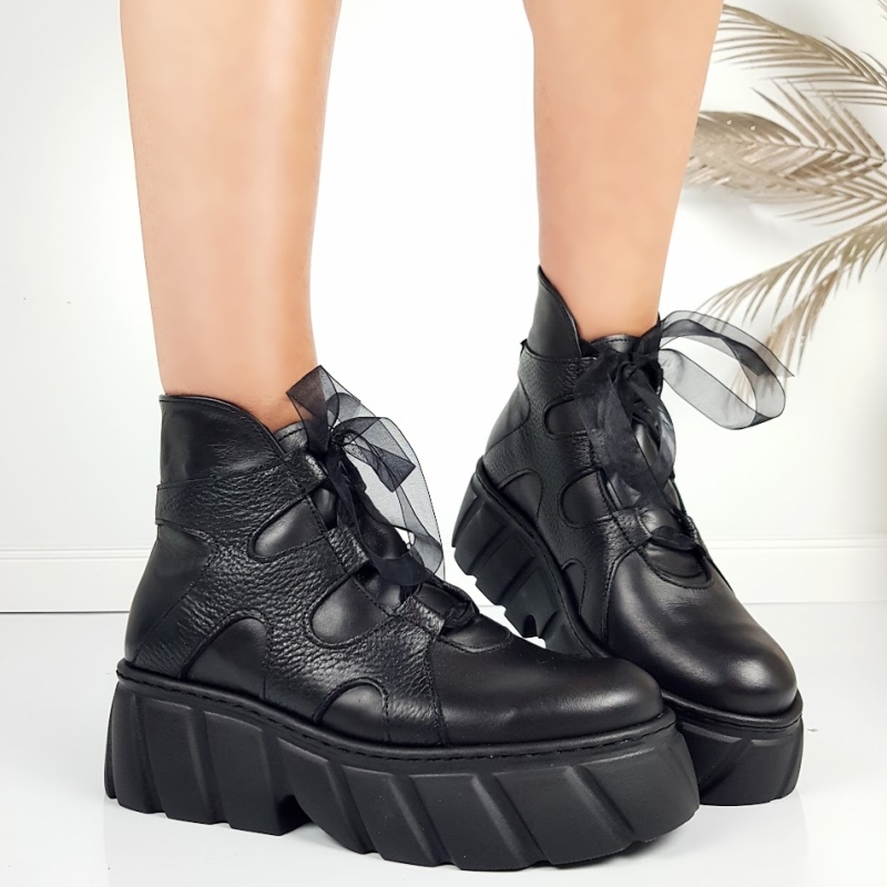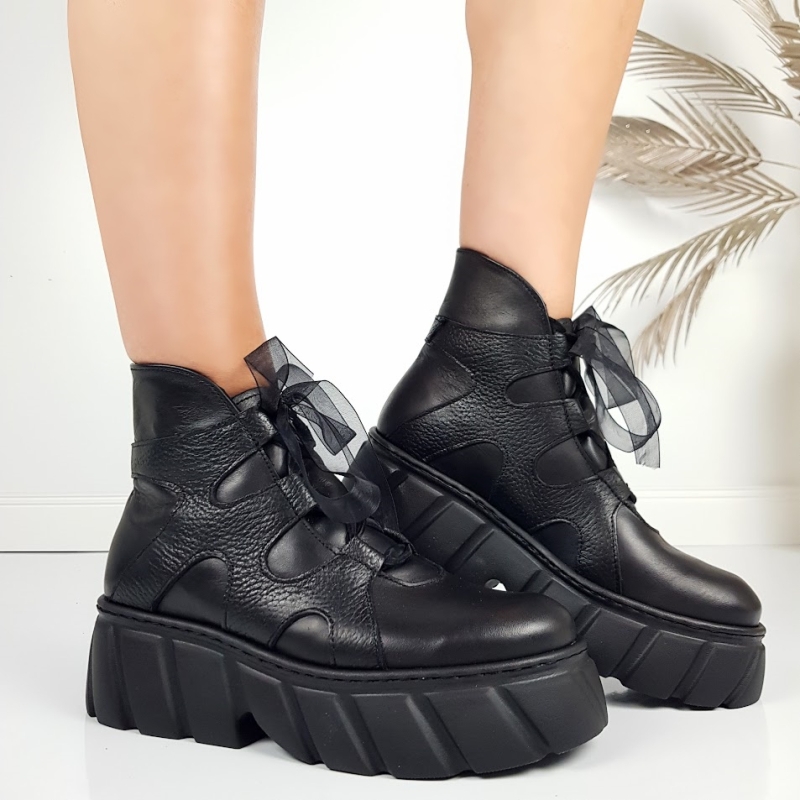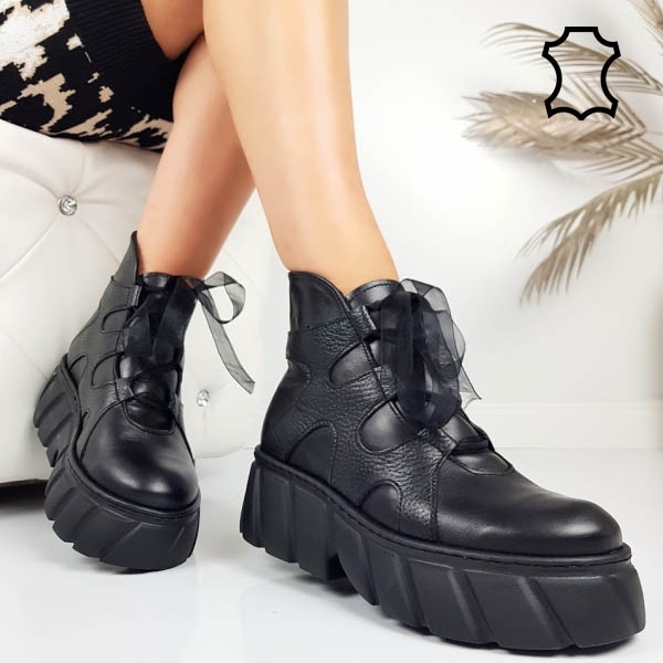 Начало НОВА КОЛЕКЦИЯ ДАМСКИ БОТИ Ежедневни боти Черни боти от естествена кожа на платформа- Morani 11444