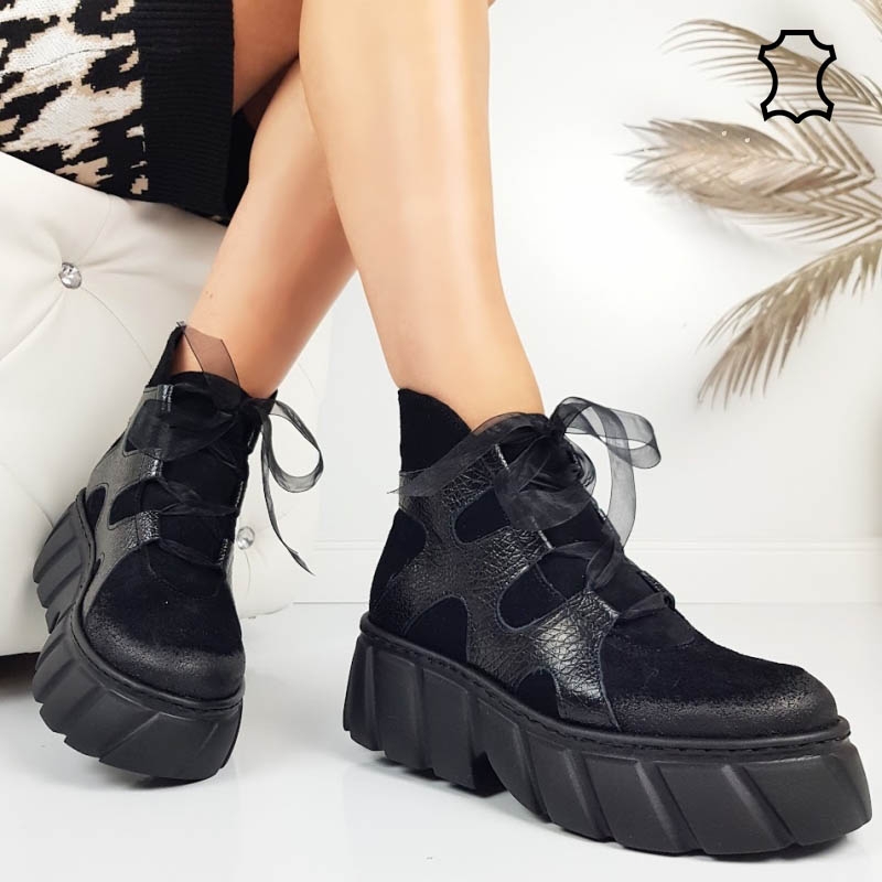 Черни боти от естествен набук на платформа- Daria Black 11445