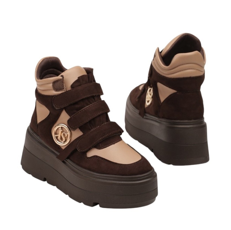 Високи кецове на платформа в цвят шоколад - Stella 11448