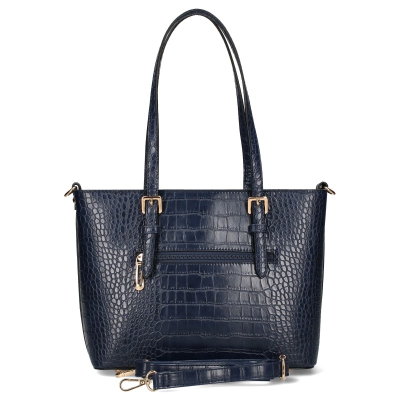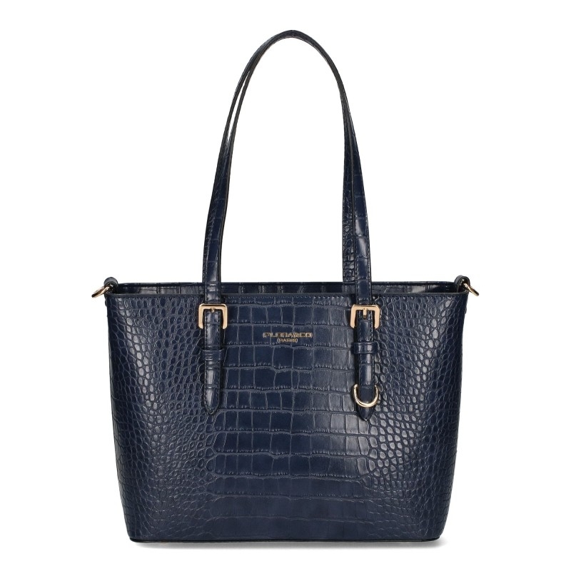 Тъмно синя чанта с кроко принт- FLORA&CO 11453