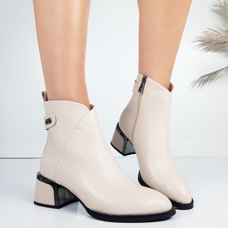 Бежови боти с кроко принт на удобен ток- Eliza Bulgaria 11470