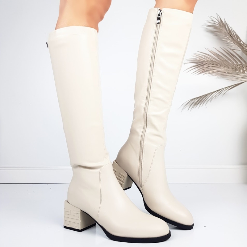 Бежови ботуши на удобен широк ток- Eliza Bulgaria 11482