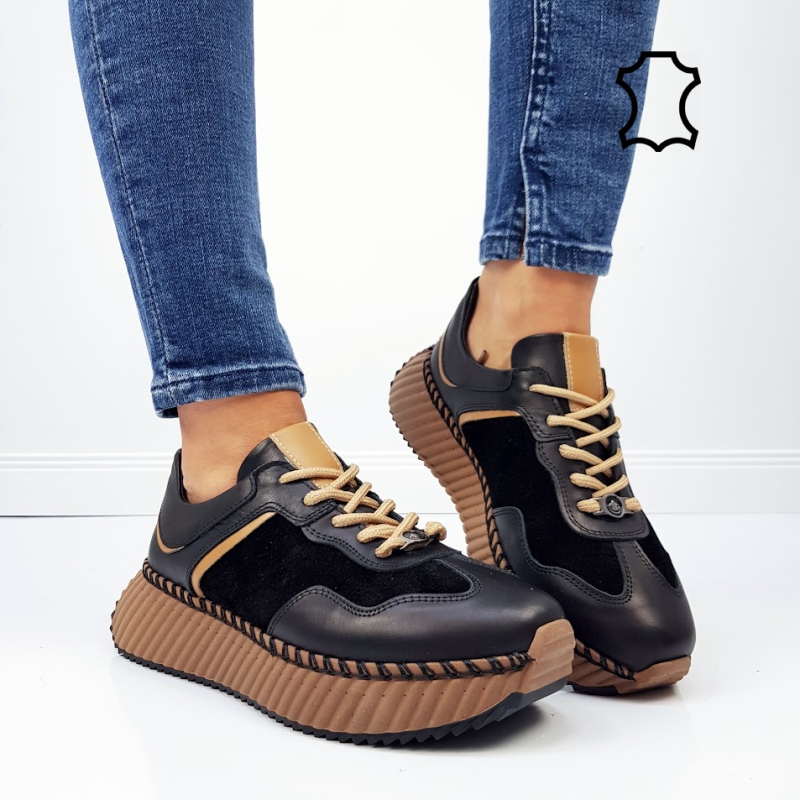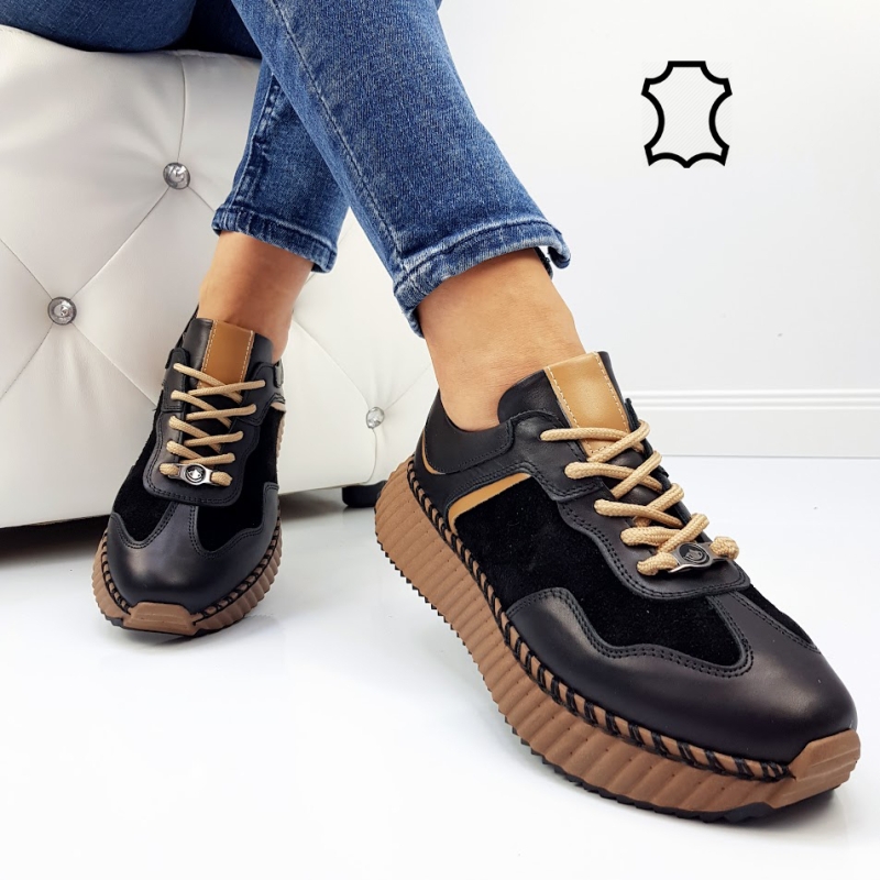 Сникърси в черен и кафяв цвят от естествена кожа- Zara 11487