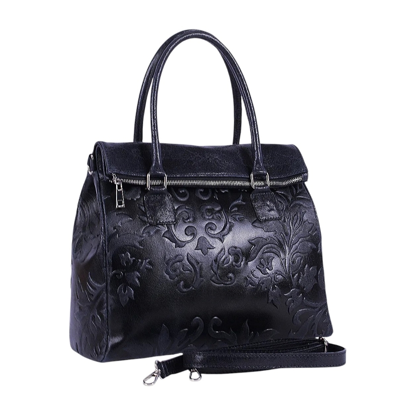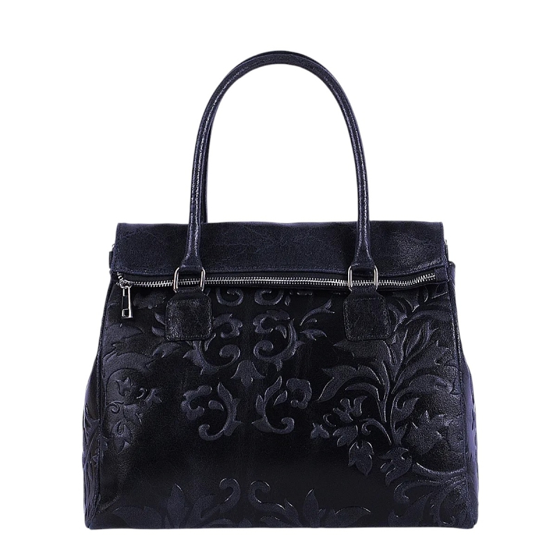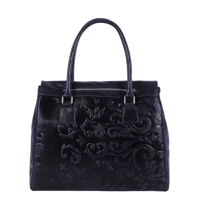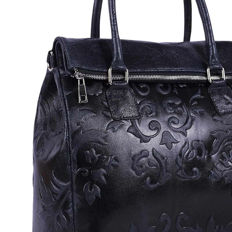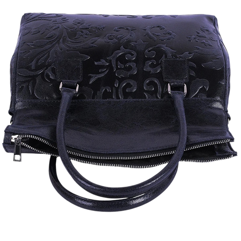 Луксозна тъмно синя чанта от естествена кожа- Afra Blue 11505