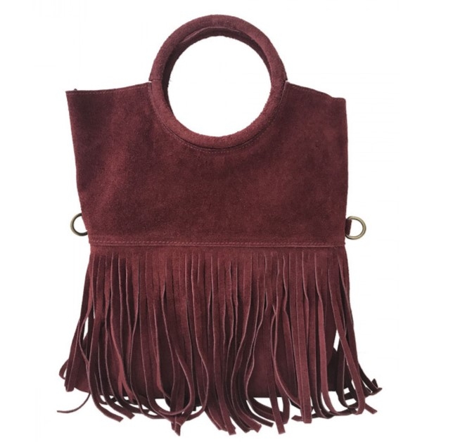 Чанта от естествен велур с ресни в цвят бордо- Virna Burgundy 11526