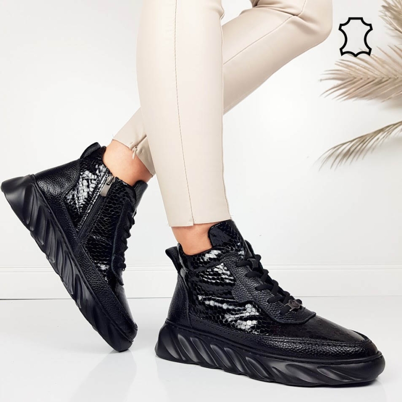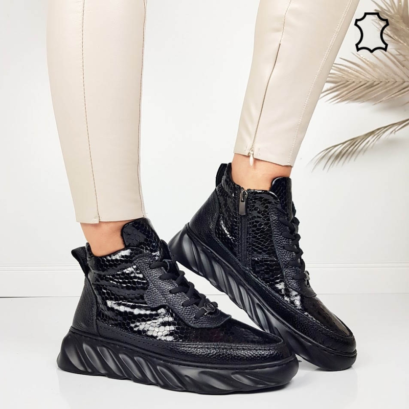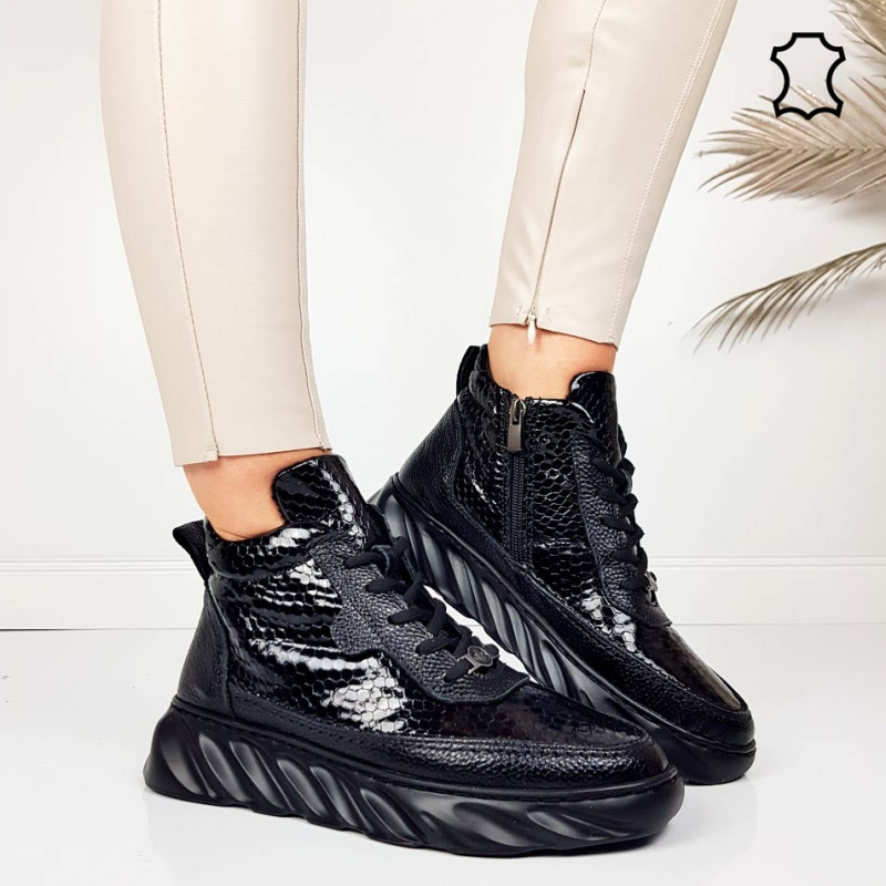Черни боти от естествена кожа със змийска шарка - Darena Black 11552