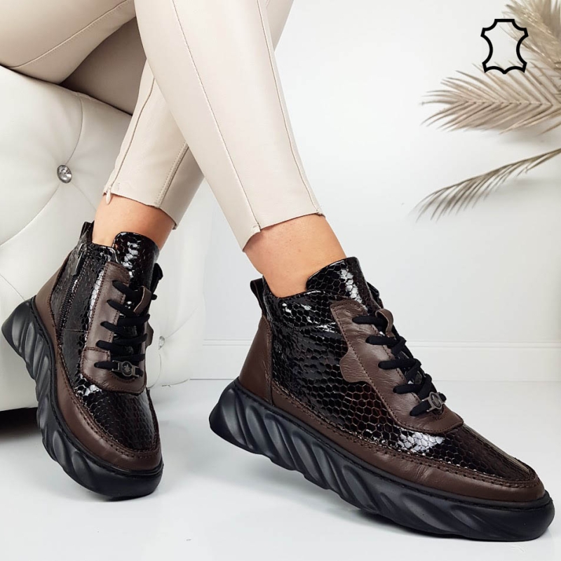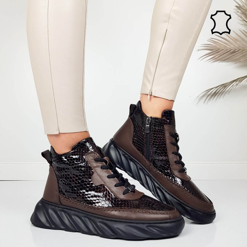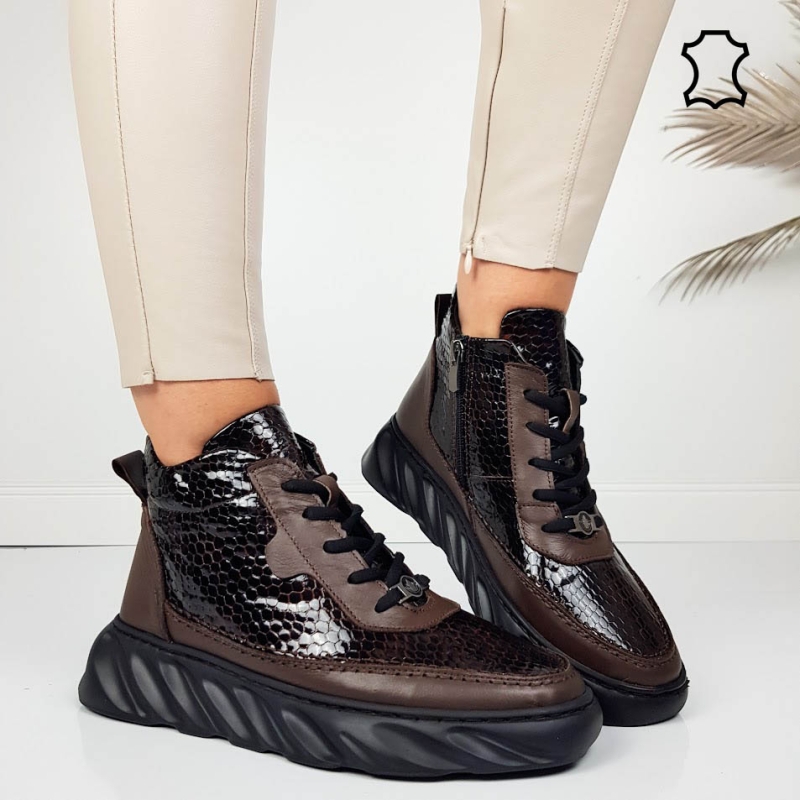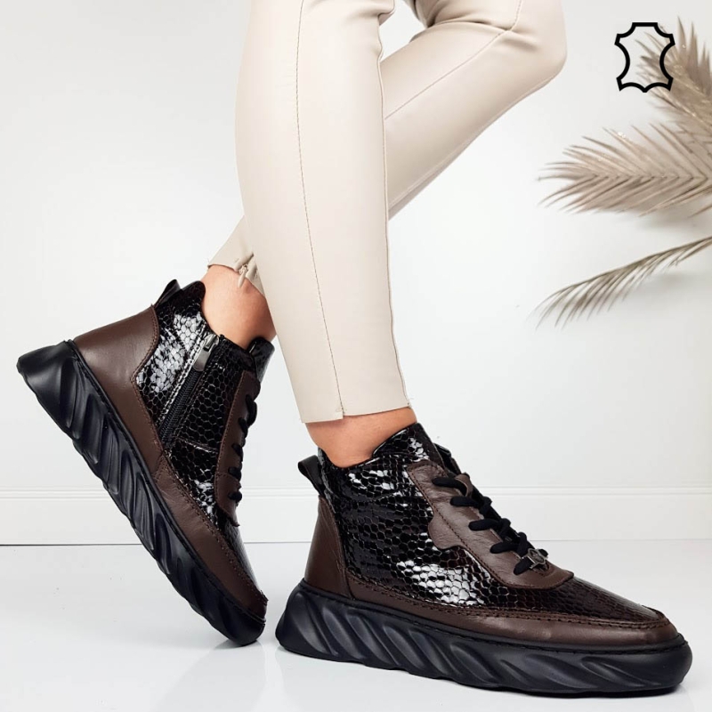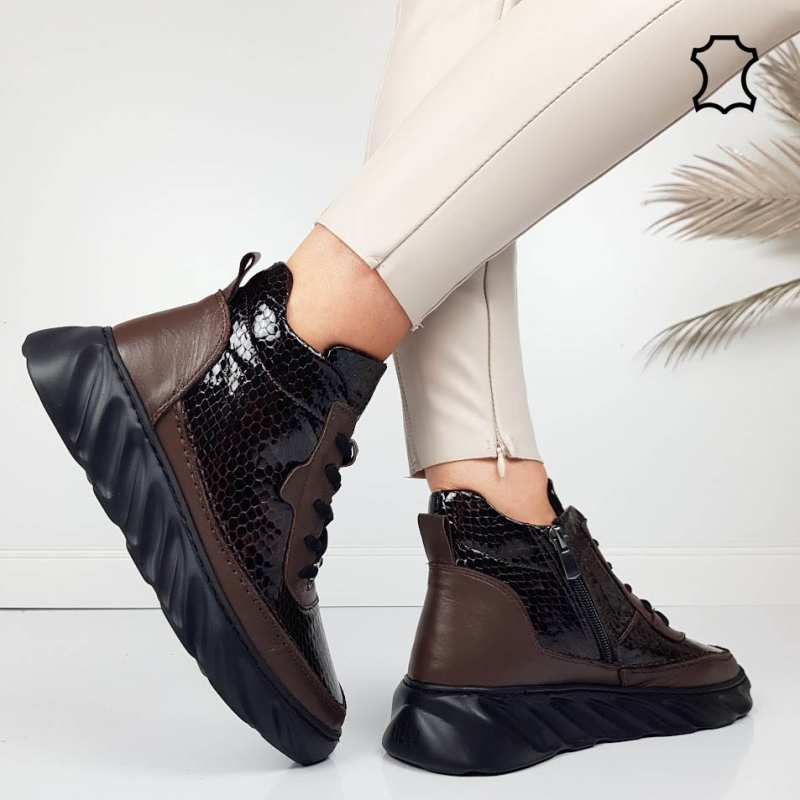 Кафяви боти от естествена кожа и лак- Darena Blrown 11553
