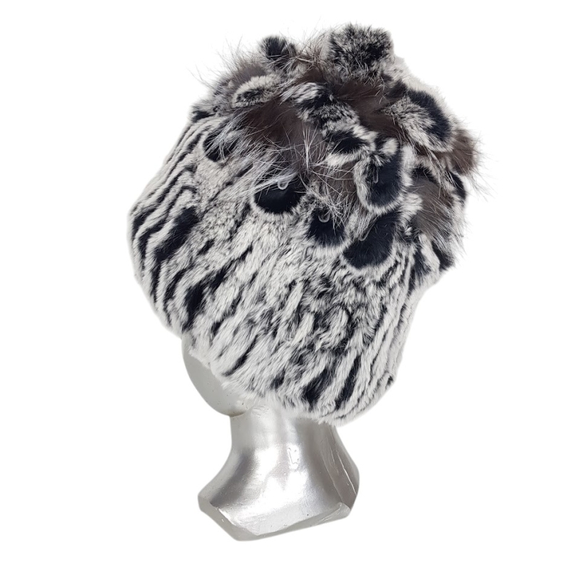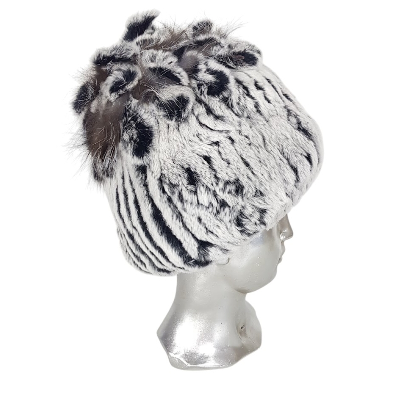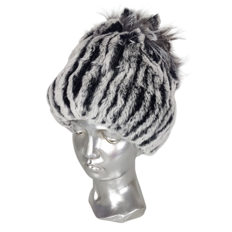 Луксозна шапка от естествен косъм на чинчила и лисица- Tera 11555