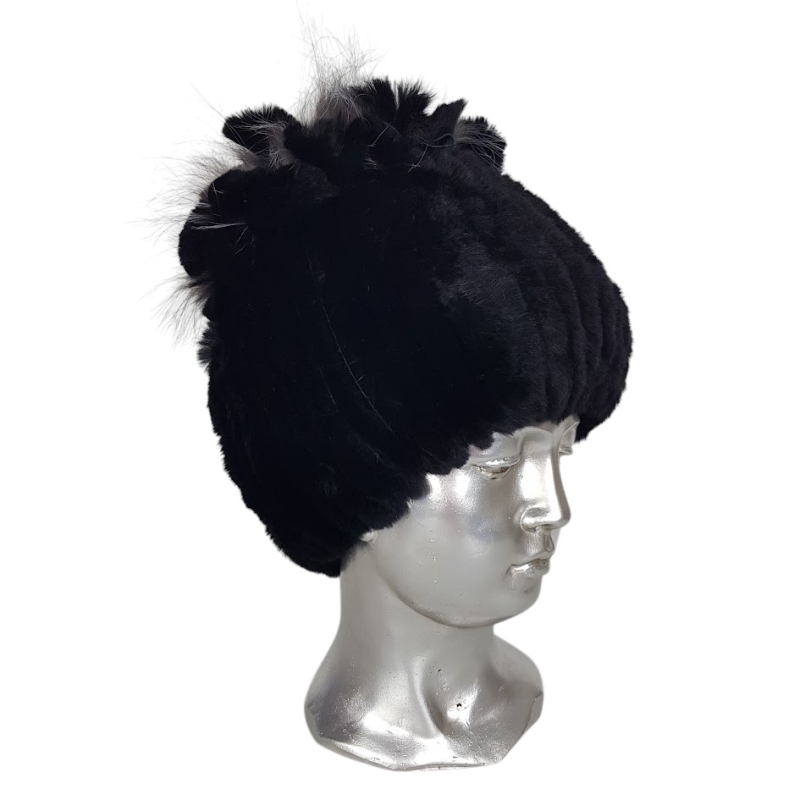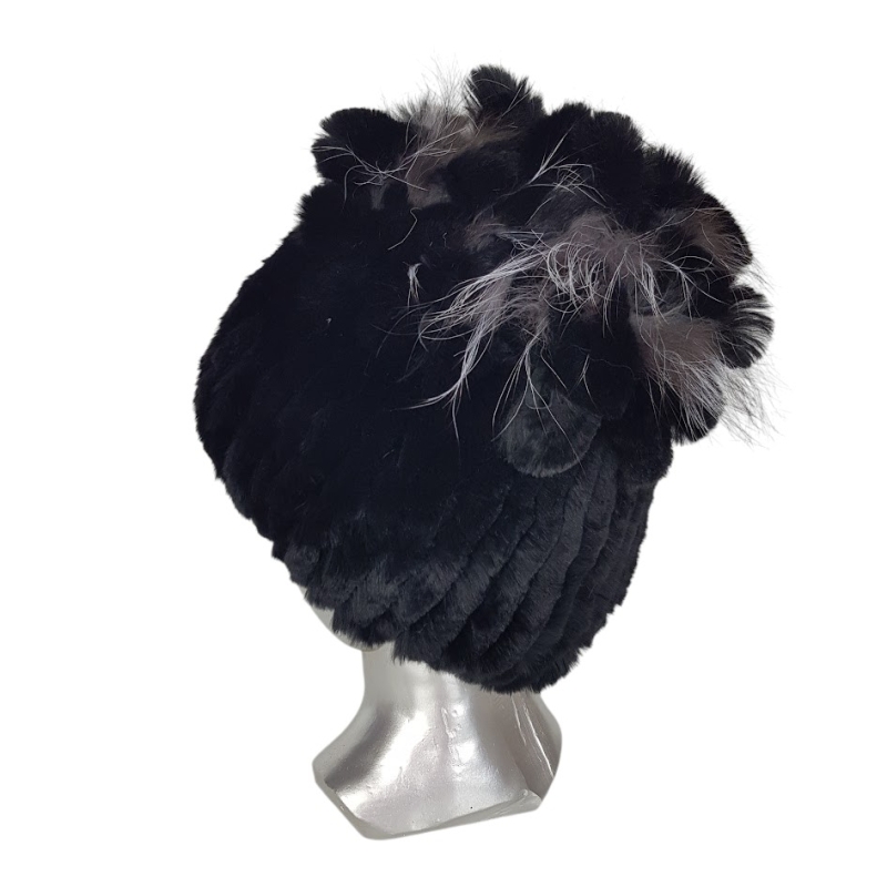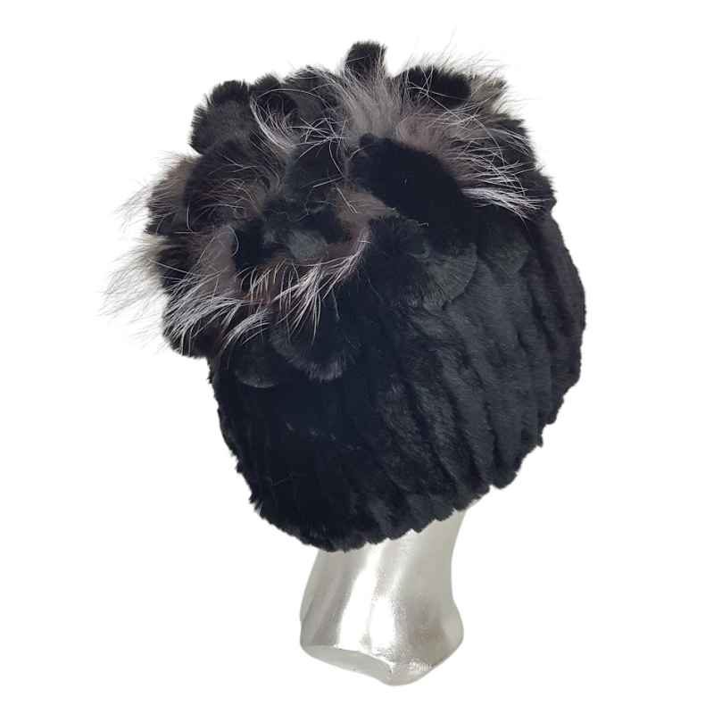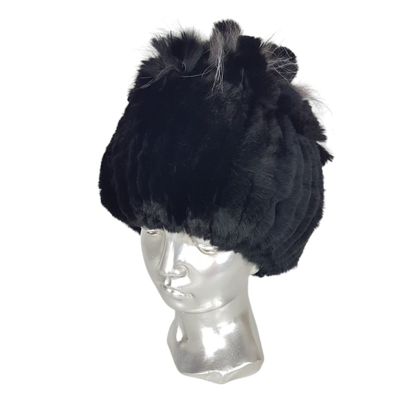 Черна луксозна шапка от естествен косъм на лисица- Nora Black 11557