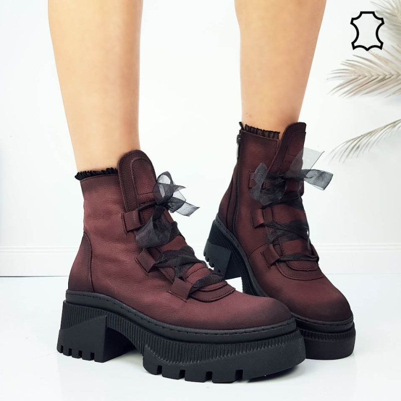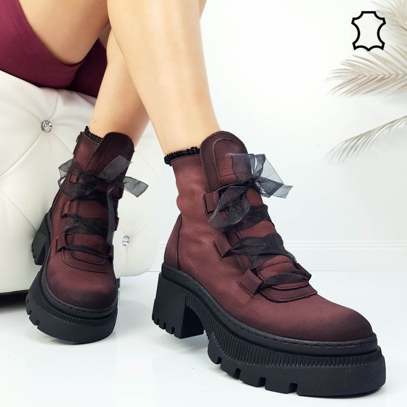 Боти от естествена кожа в цвят бордо - Tina 11573