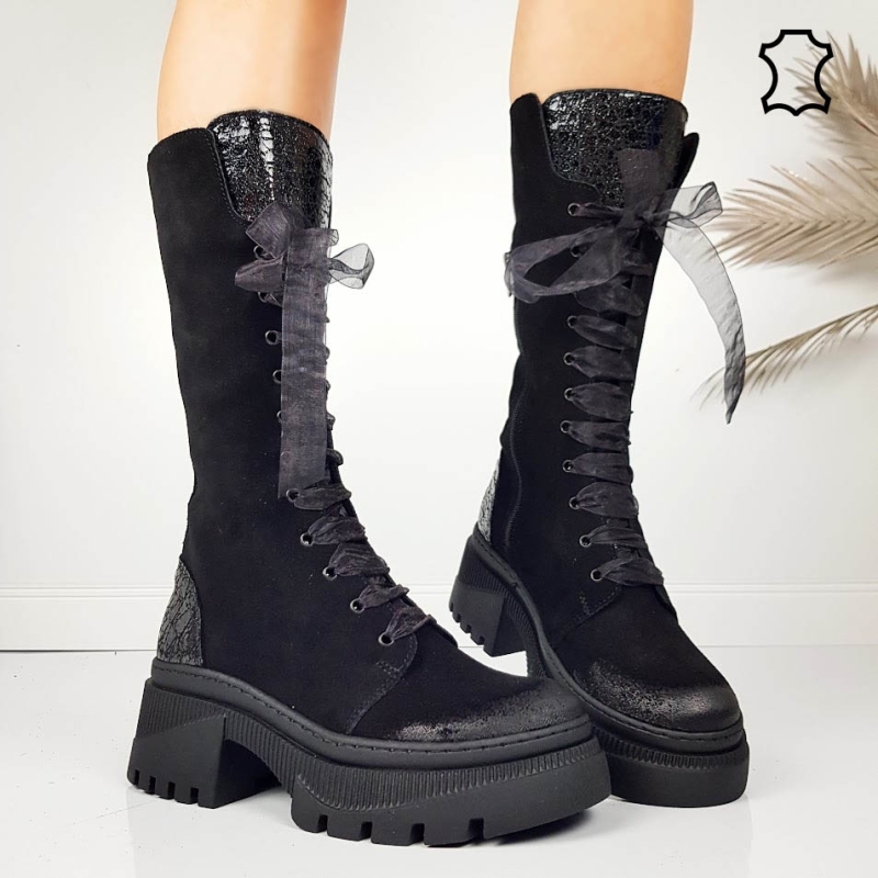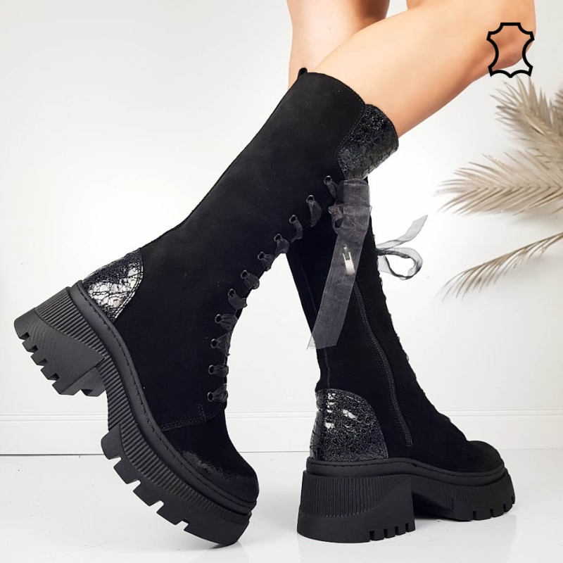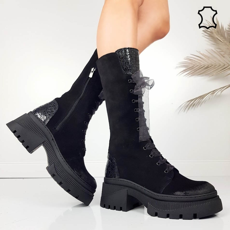 Черни ботуши от естествен набук- Adena 11576