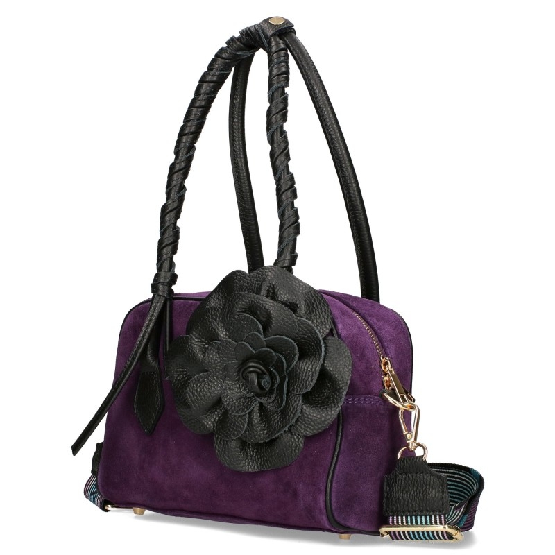 Лилава чанта от естествен велур с цвете- EGO 11611