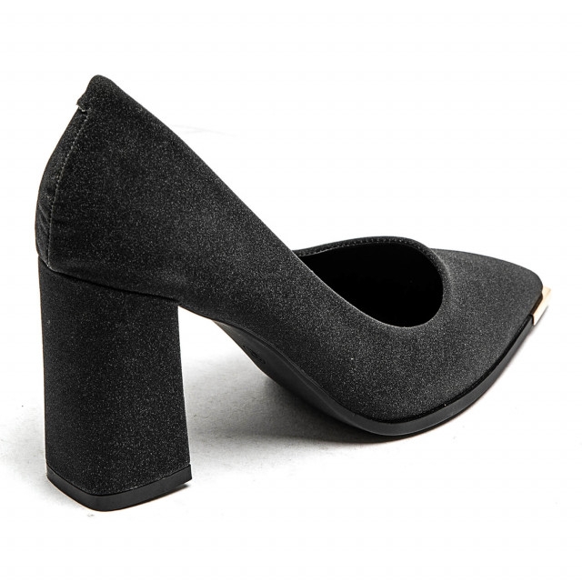 Елегантни остри обувки на удобен широк ток с брокат- Izabel Black 11613