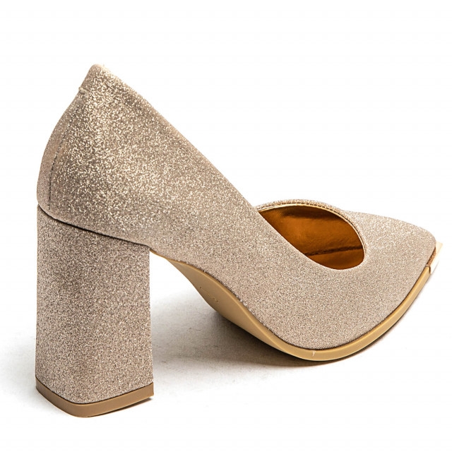 Елегантни златни обувки на удобен широк ток с брокат- Izabel Gold 11614